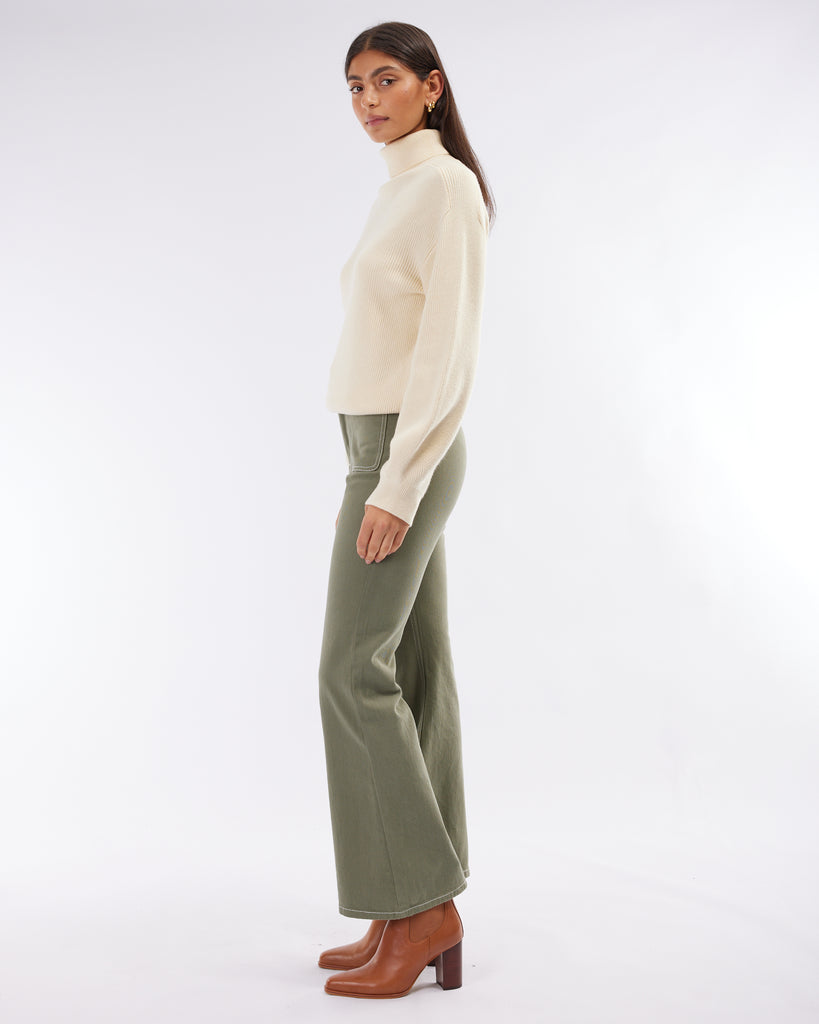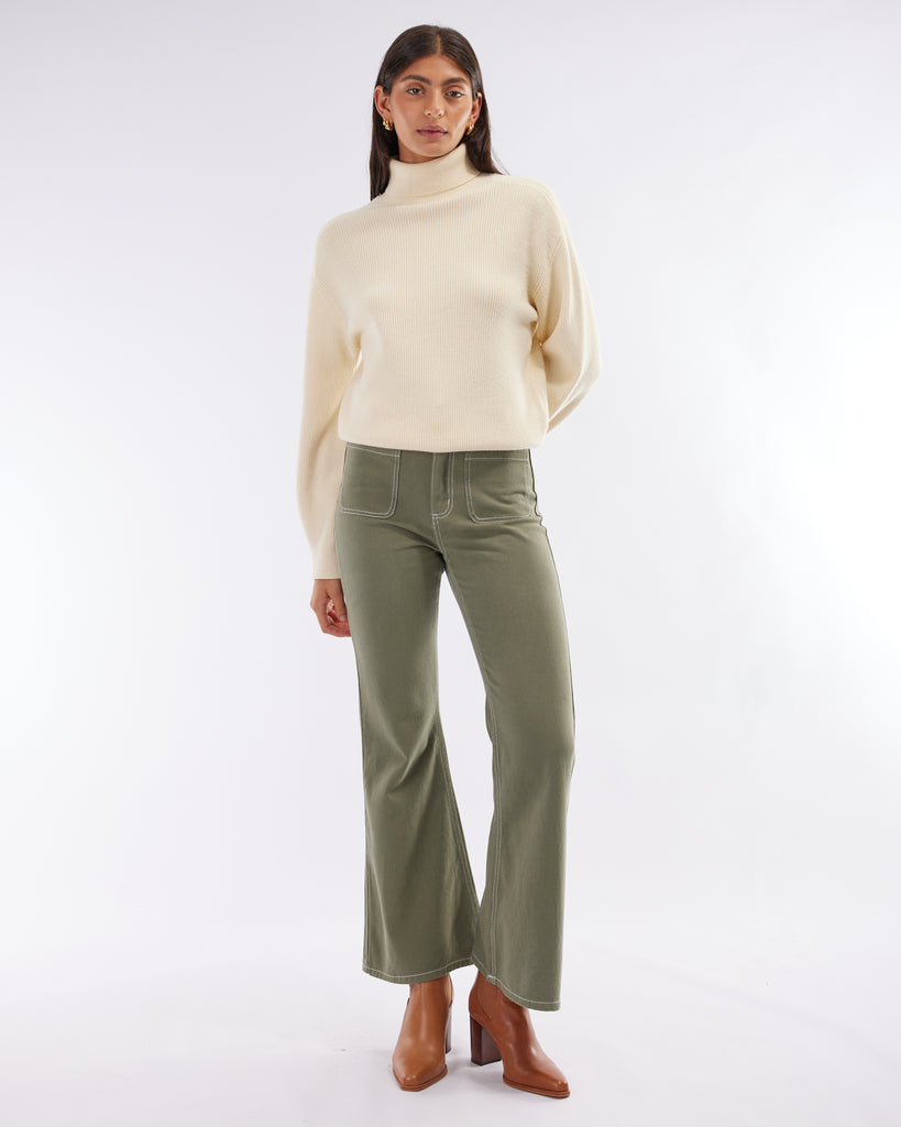 The Hexham Drill Pant echoes the classic 70s era with its timeless and distinct silhouette. Crafted from a cotton drill fabrication, this pant is recognised for its flared hem, contrast stitching, dual side and back pockets. Effortlessly take this piece from day to night by pairing it with your favourite boot.