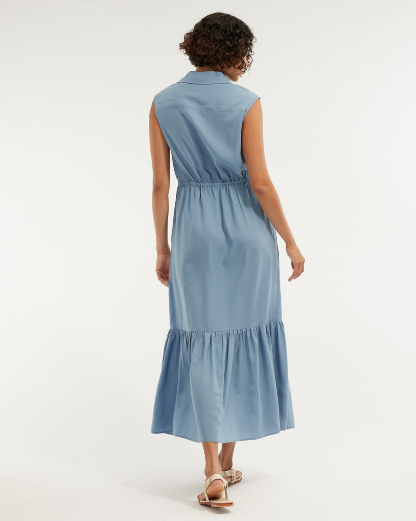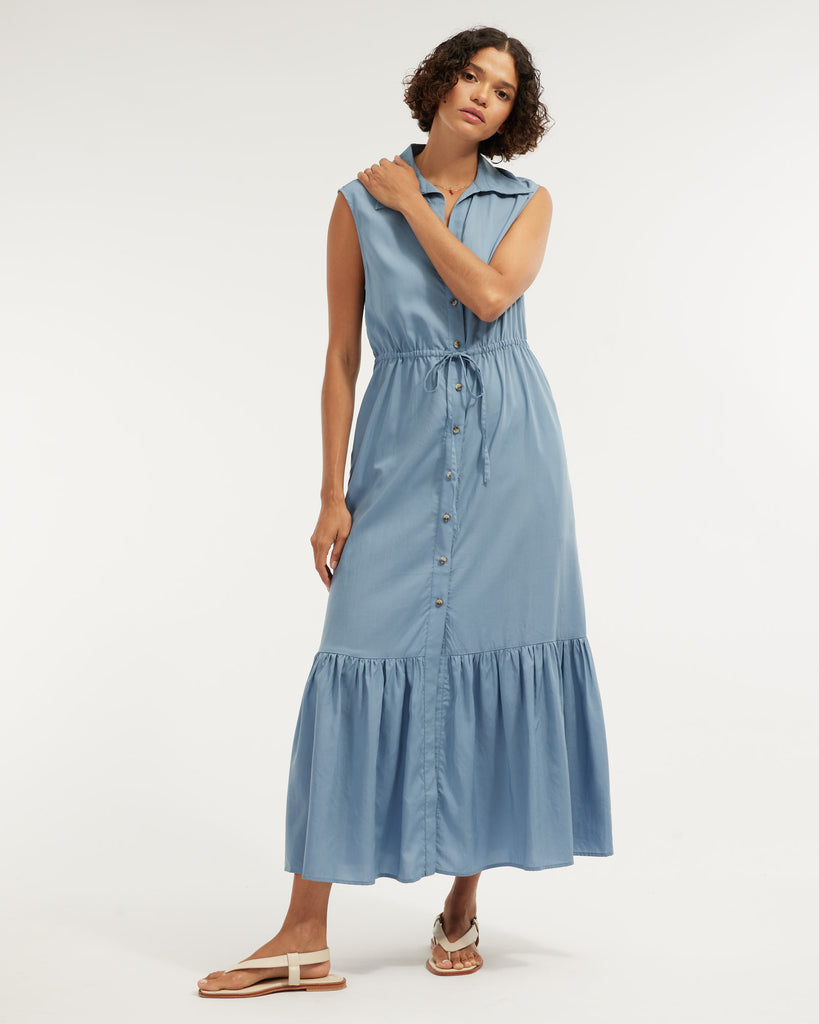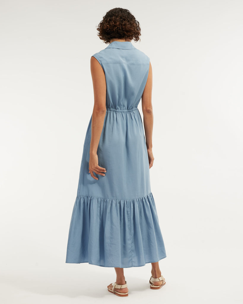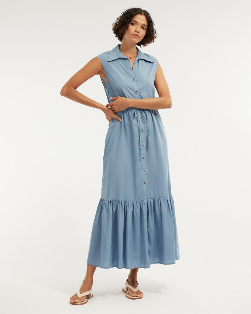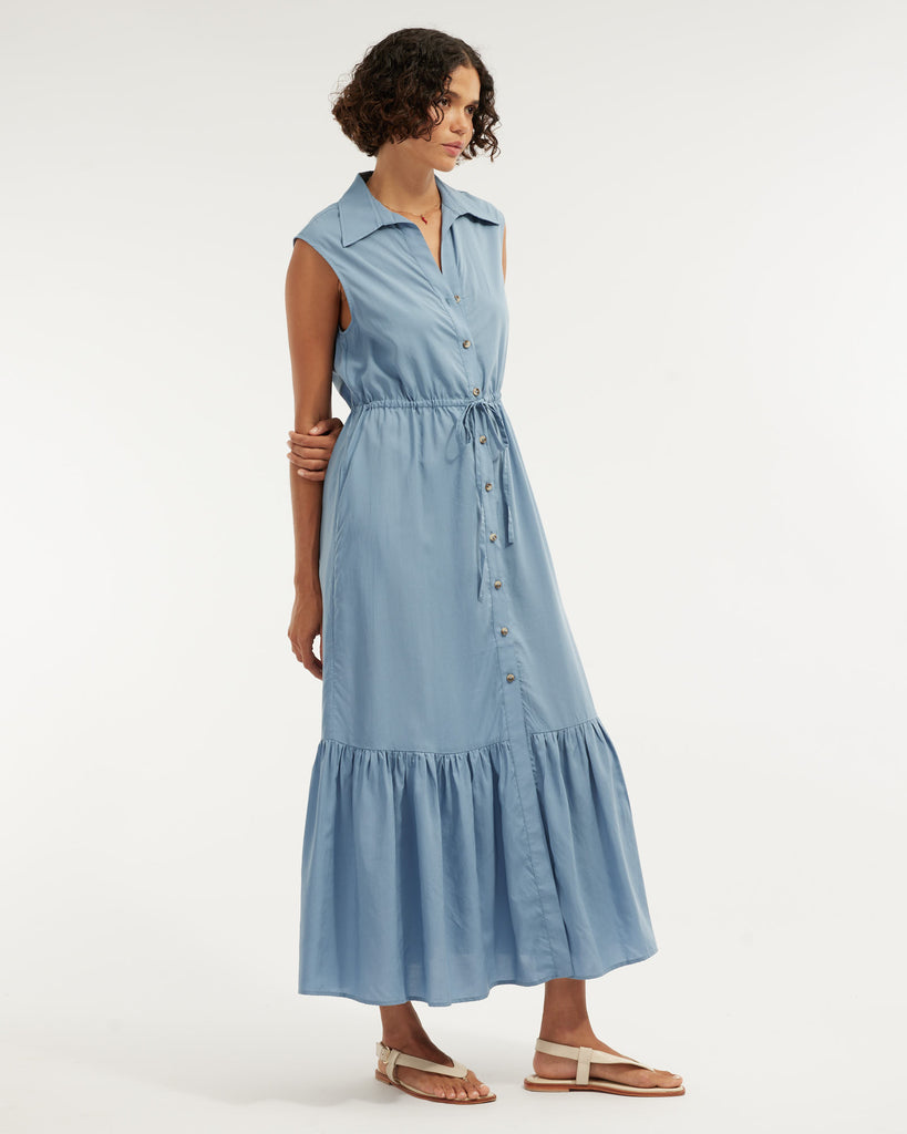 Kate Buttoned Maxi Dress - Cerulean Blue