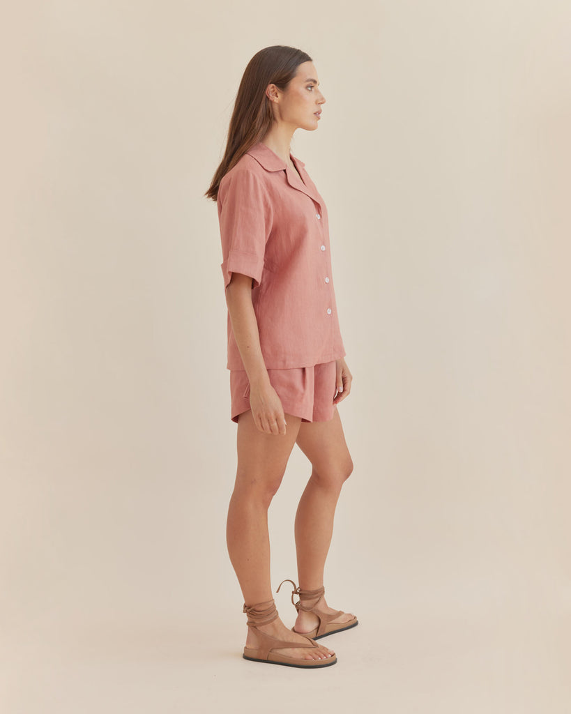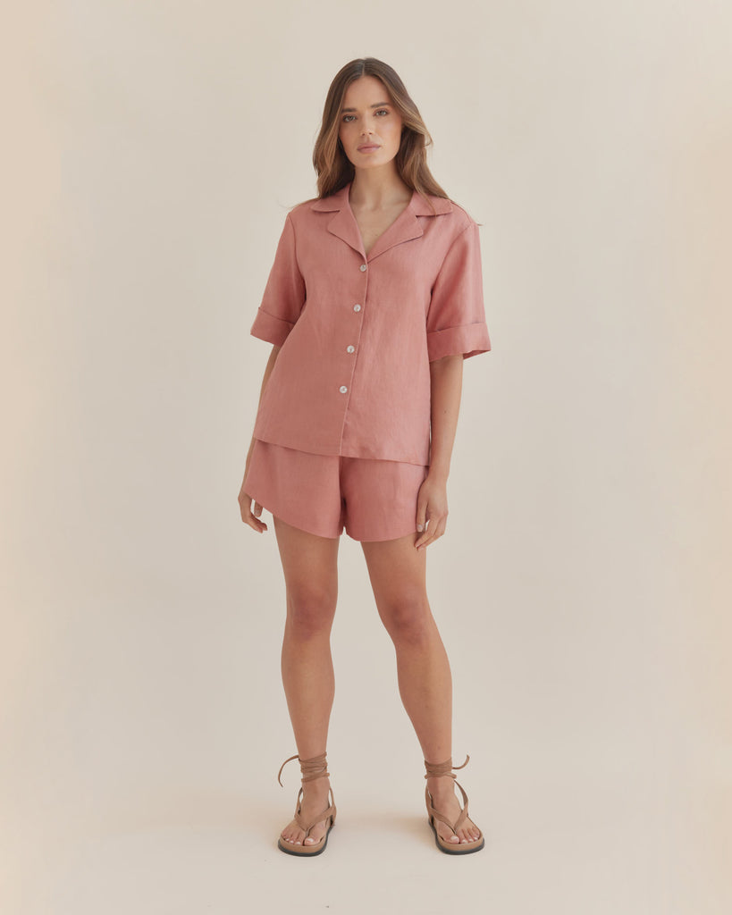The Maelle Linen Shirt is a timeless wardrobe staple, made from 100% linen for a breathable and lightweight feel. This shirt features a relaxed fit with a classic collar and cuffed sleeves, offering a polished yet effortless look that pairs beautifully with any outfit.