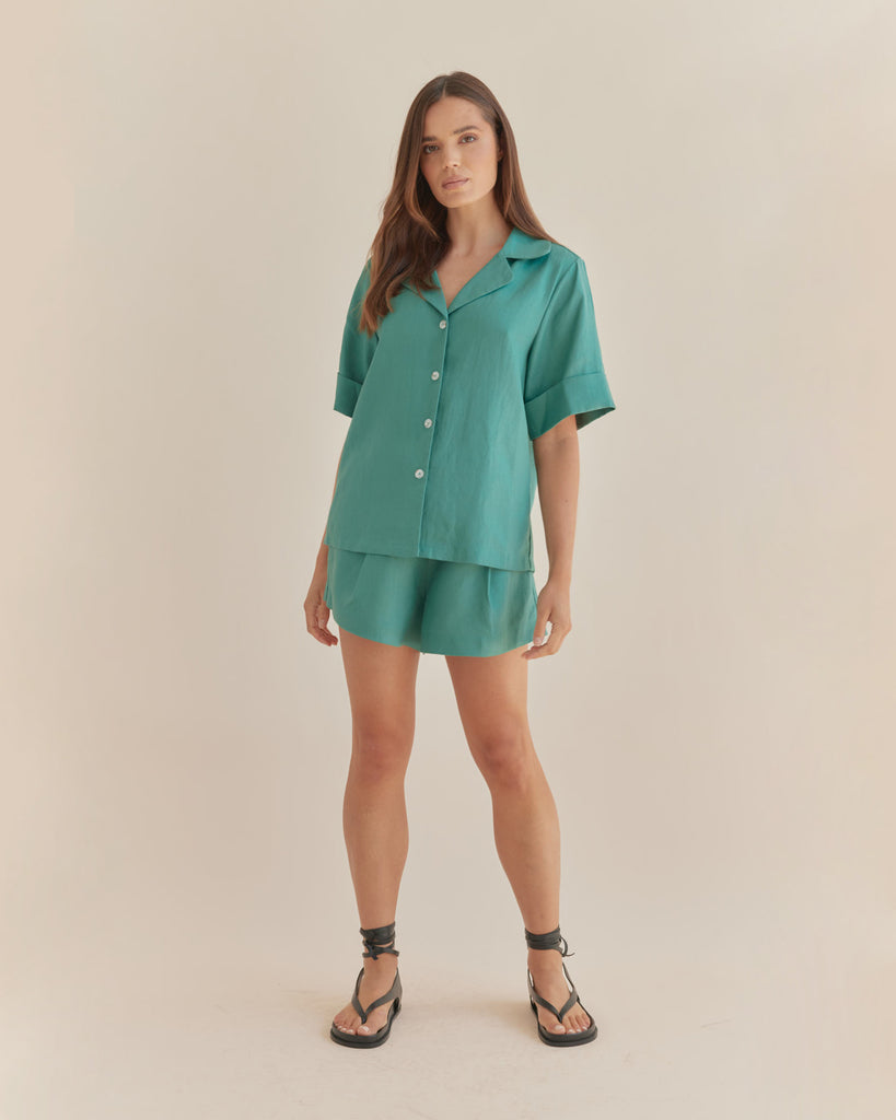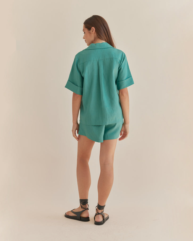 The Maelle Linen Shirt is a timeless wardrobe staple, made from 100% linen for a breathable and lightweight feel. This shirt features a relaxed fit with a classic collar and cuffed sleeves, offering a polished yet effortless look that pairs beautifully with any outfit.