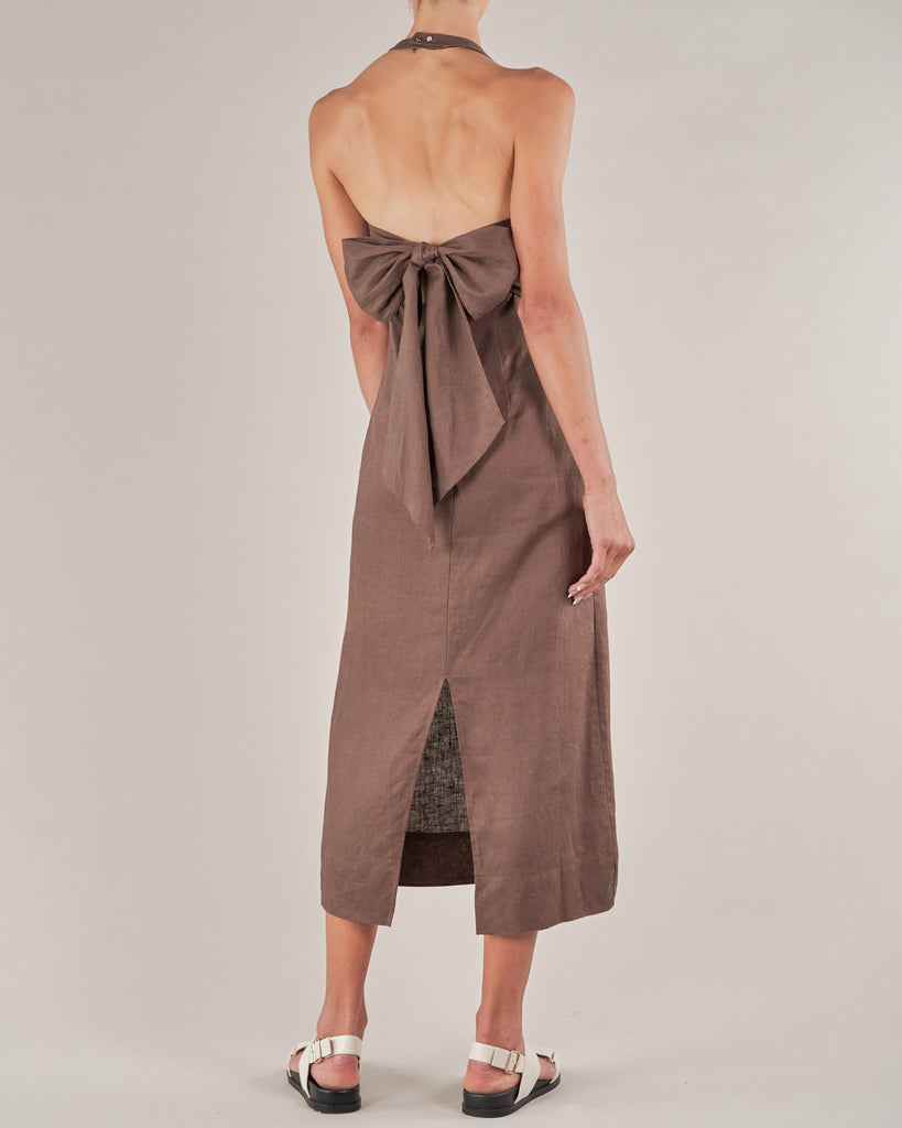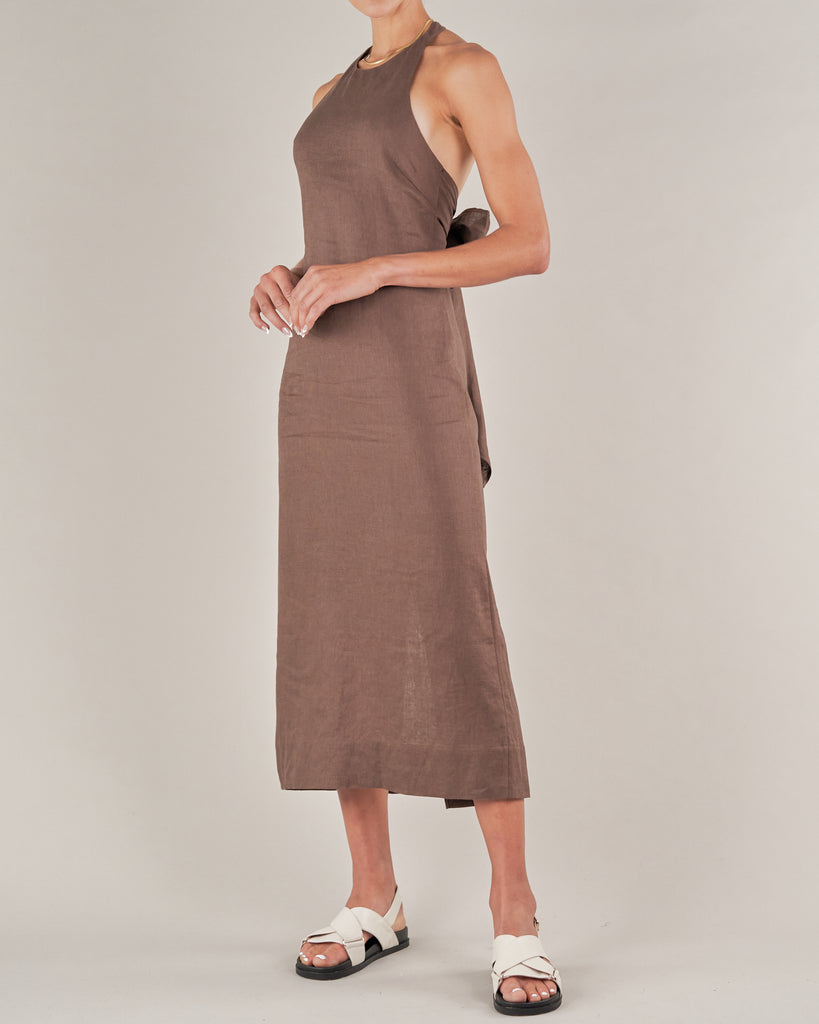 Santa Cruz Linen Halterneck Dress - Chocolate