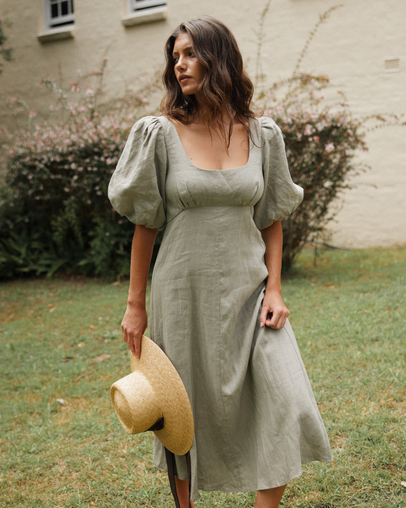 Romilly Linen Midi Dress - Sage