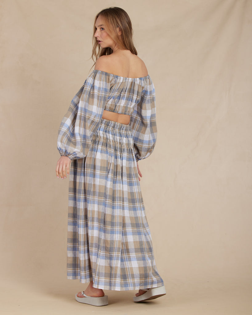 The Allegra Plaid Linen Crop Top is your perfect transeasonal companion cut in an elevated pure linen fabrication. Featuring an elasticated scoop neckline, fitted bodice and ballooned sleeves, pair it back with the Allegra Plaid Skirt for a vacation-ready ensemble.