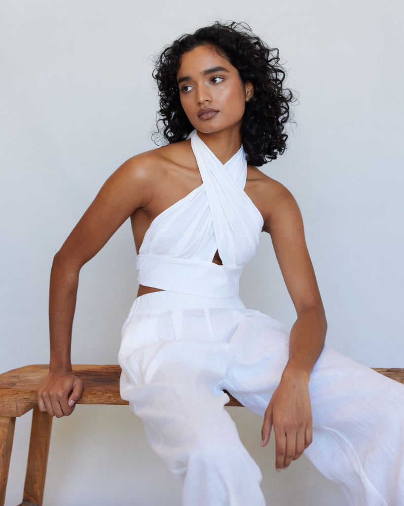 A resort must-have, the Amrita Halter Top is perfect for elevating your beachside outfit with nuanced detailing. Tied both at the neck and the high waist, the cross-over design allows for maximum tailoring to your shape.