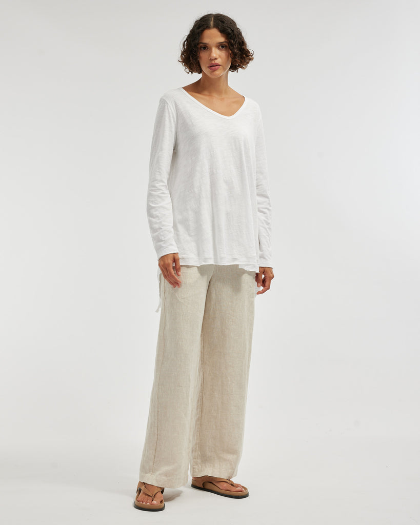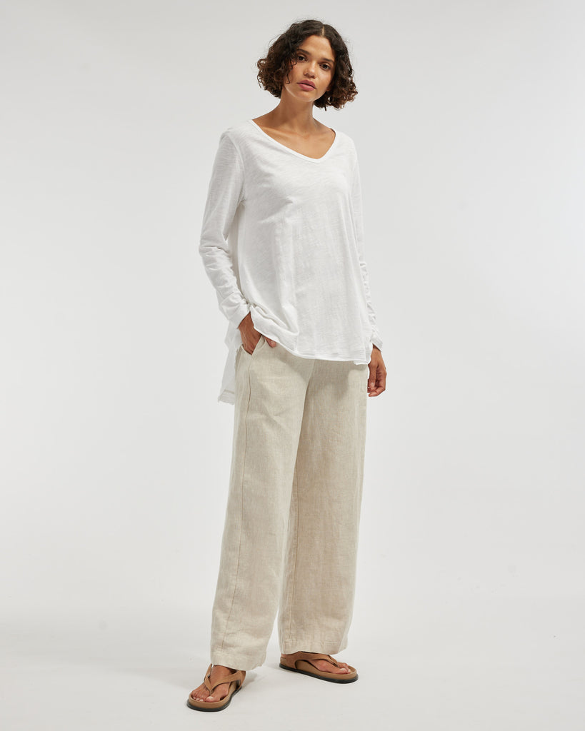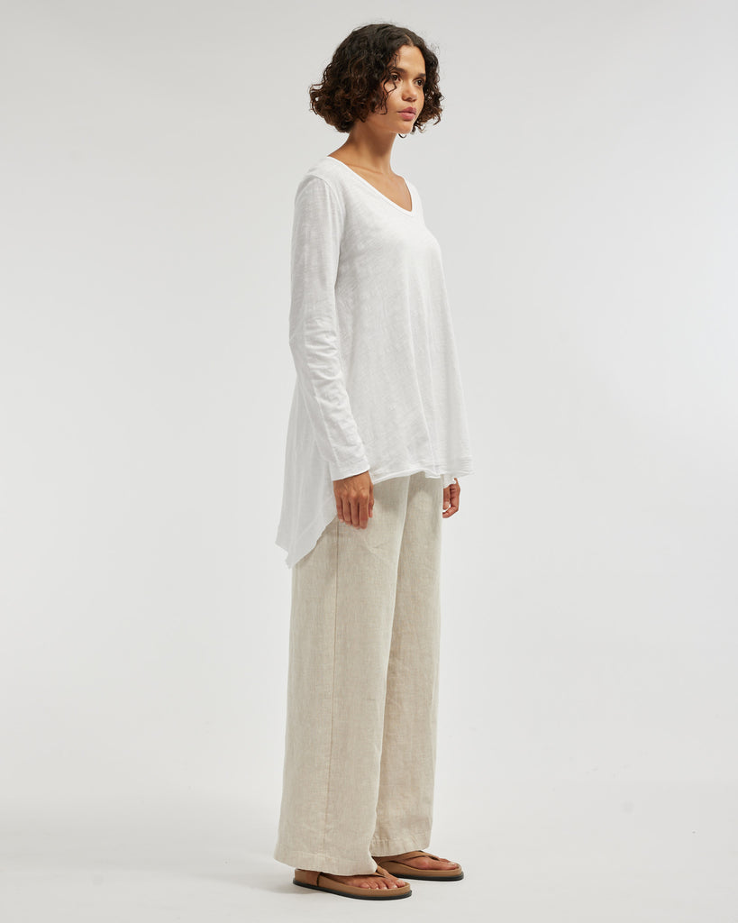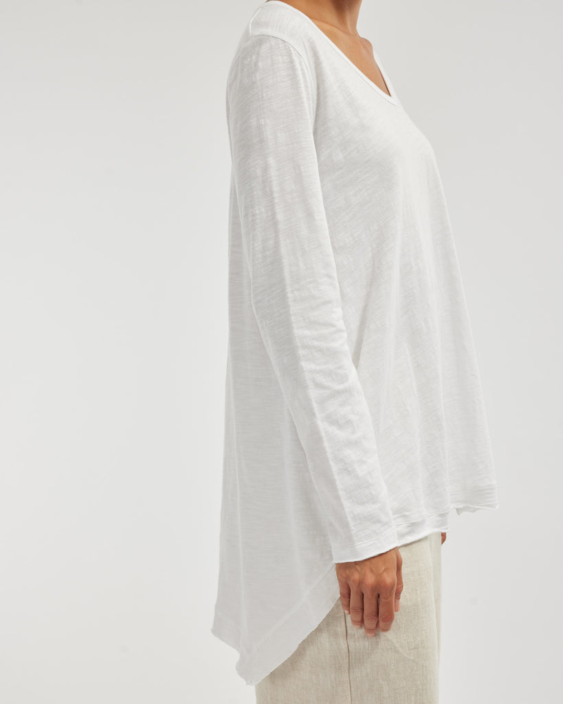 The Andie Long Sleeve Tunic Top features a high-low hemline that's shorter in front and drops over the hip at the back. Cut in a super soft slubbed cotton with raw edge detailing for a lived-in feel.