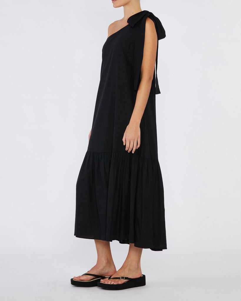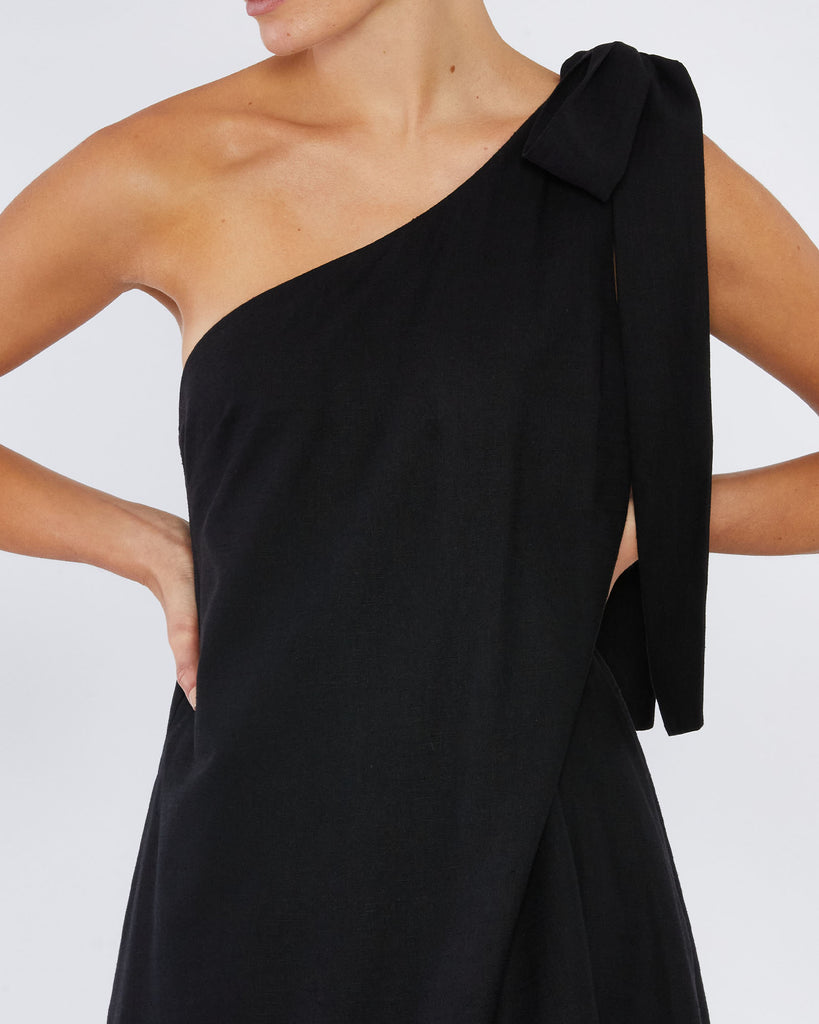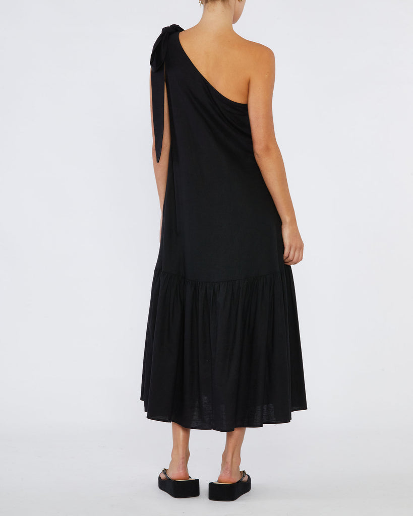 Forever wishing for an eternal summer with the Aruba Linen One Shoulder Dress. This beautiful dress delivers all expectations, defined by its one shoulder design, it features a sleeveless self-tie feature and a tiered skirt that falls into an a-line cut for easy movement. Perfect for day or night.