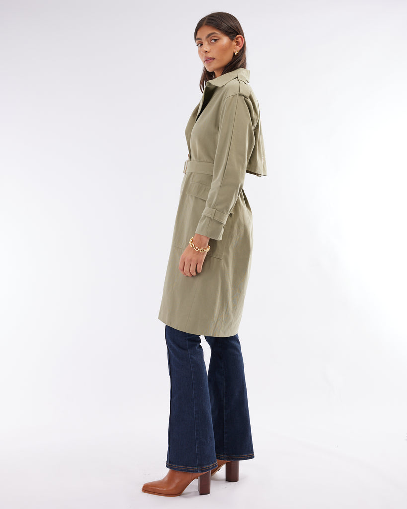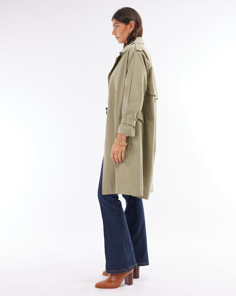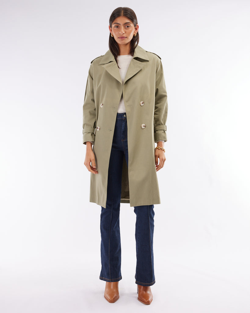 The Arwen Trench Coat will endlessly remain a wardrobe classic with its timeless shape and style. This trench coat is crafted from a 100% cotton fabrication that allows for a soft and luxurious feel. It features a relaxed, double breasted silhouette, removable self-covered belt, a classic storm flap, buckled cuffs and epaulettes. Pair yours with our luxe layering basics to keep you warm.