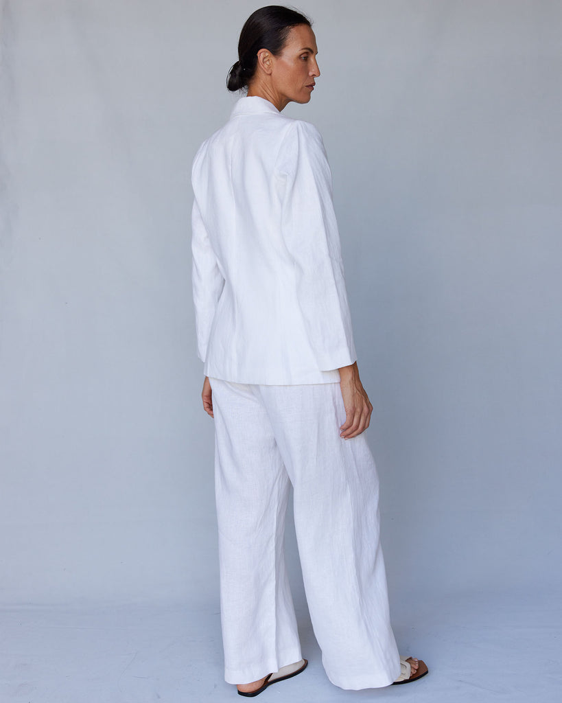 The Azure Linen Blazer again calls on our penchant for considered tailoring. Cut from a luxurious 100% linen textile, the Azure features a double-breasted opening, jetted front pockets, and a boxy, androgynous silhouette. Pair back with our Bridgette Linen Pant for a sophisticated day-to-night transeasonal look.