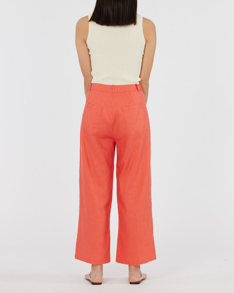 The Barossa Linen Pant elevates any look this season with its breathable and lightweight feel. Made from 100% linen fabrication, this linen pant features back pockets, a wide-leg cut and relaxed fit. Simply style this with your favourite shoes and accessories for any occasion.