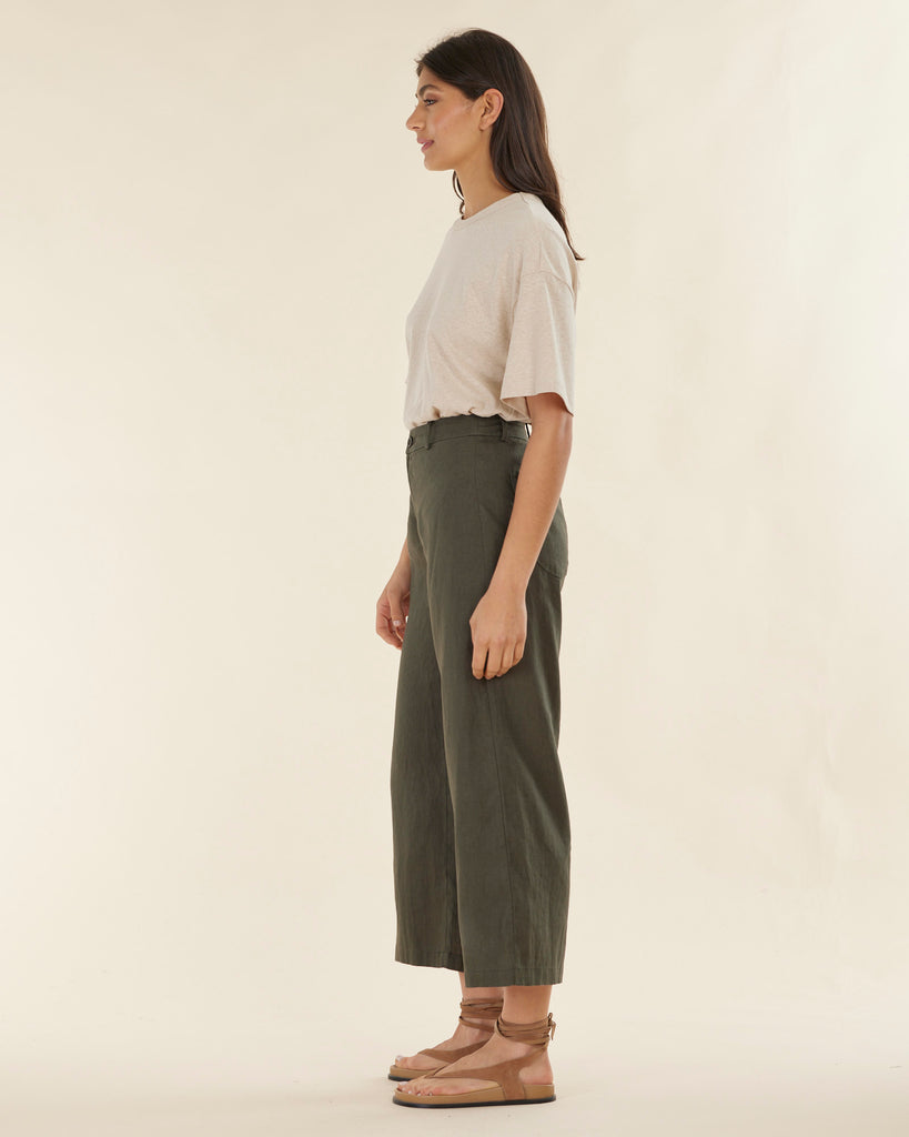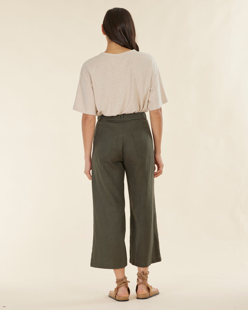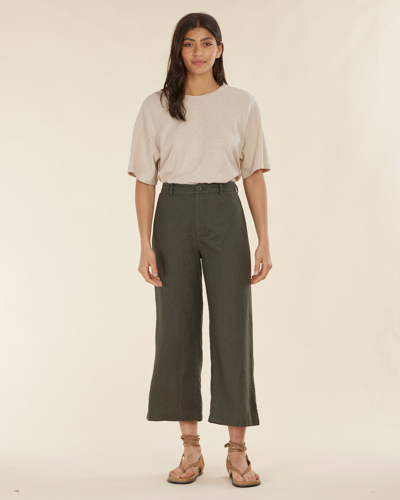 The Barossa Linen Pant elevates any look this season with its breathable and lightweight feel. Made from 100% linen fabrication, this linen pant features back pockets, a wide-leg cut and relaxed fit. Simply style this with your favourite shoes and accessories for any occasion.