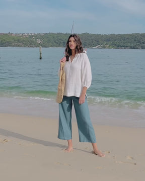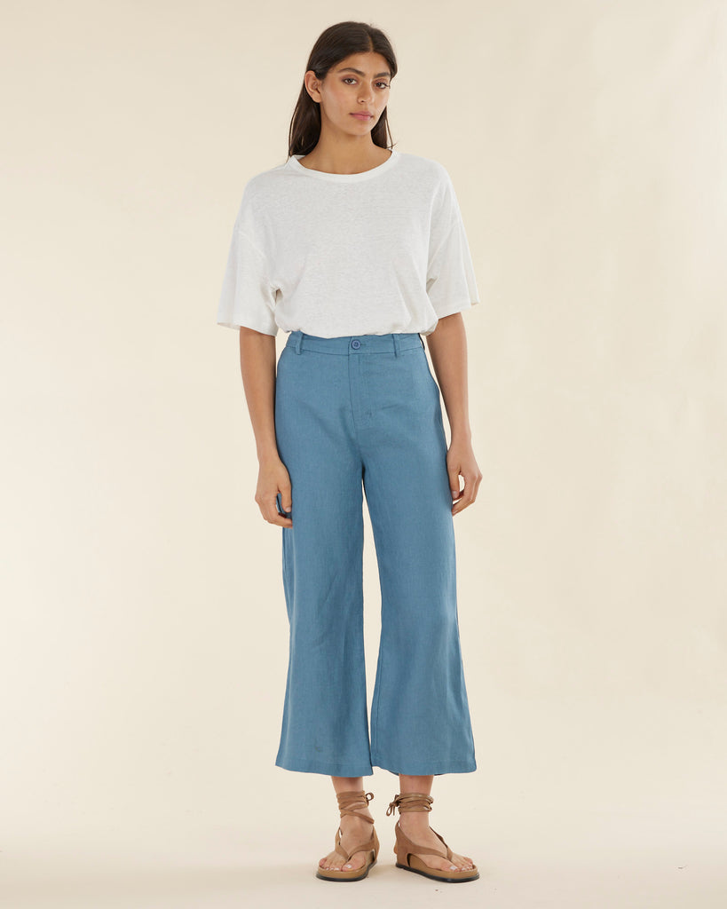 The Barossa Linen Pant elevates any look this season with its breathable and lightweight feel. Made from 100% linen fabrication, this linen pant features back pockets, a wide-leg cut and relaxed fit. Simply style this with your favourite shoes and accessories for any occasion.