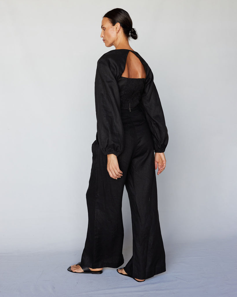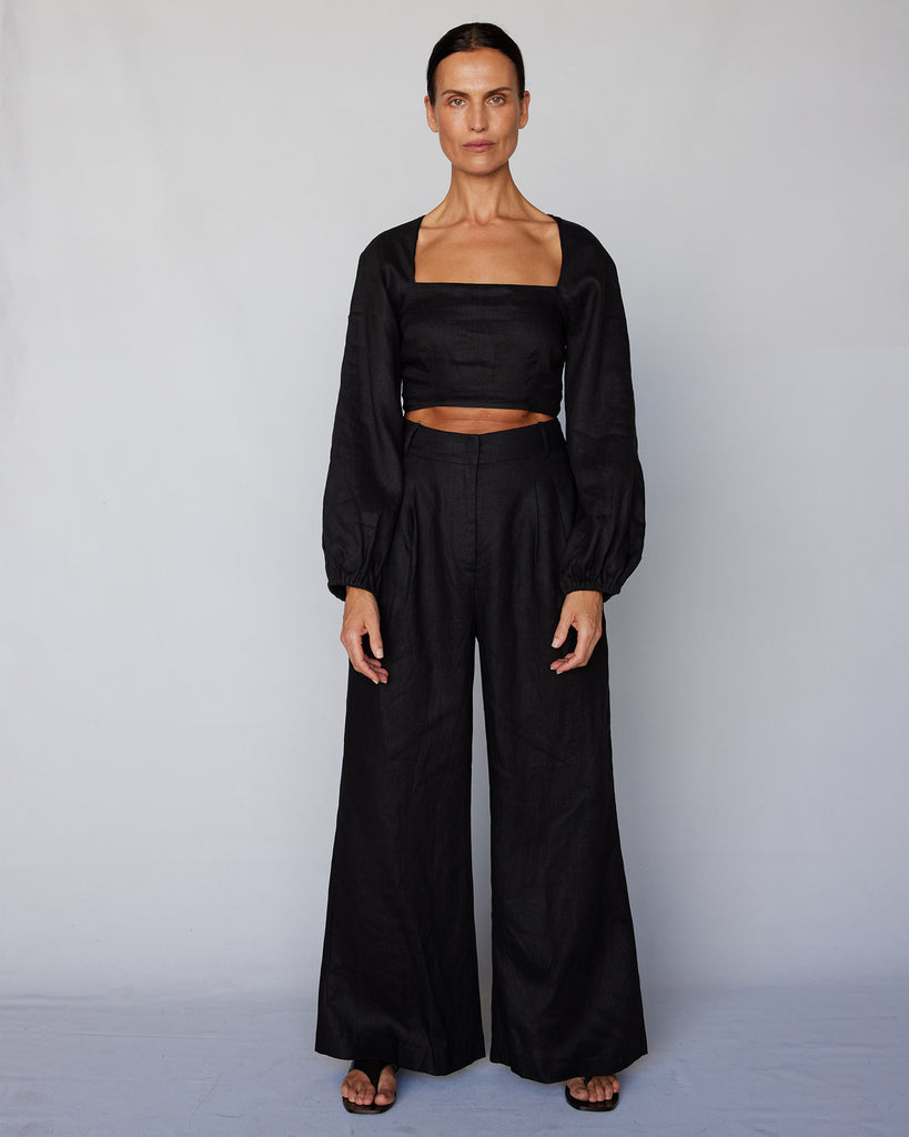 Featuring a squared neckline, fully lined lantern sleeves and an open-back frame, the Bridgette Linen Crop Top is a romantic and sophisticated piece to be paired back with your favourite bottoms. Outfit with our Bridgette Linen Pant or Skirt as an ensemble, or for a more casual look, pair back with a pair of blue jeans. A shirred panel and zip allow for a close, flattering fit throughout the bodice.