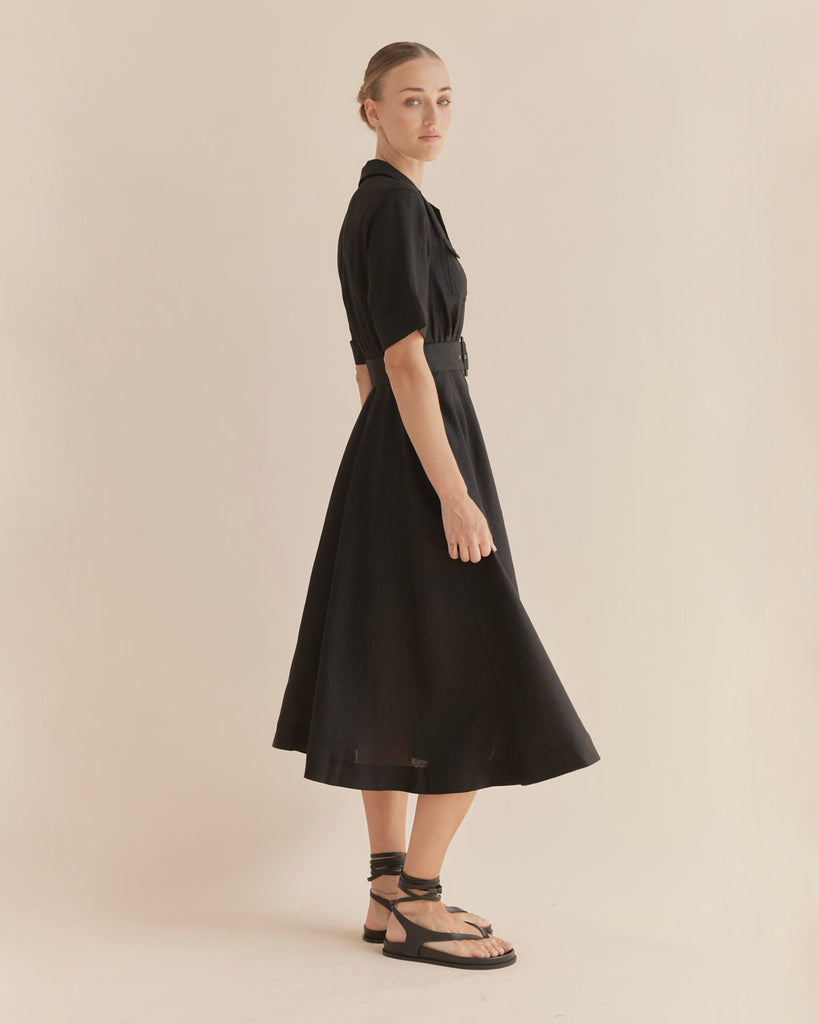 Cadence Linen Dress - Black