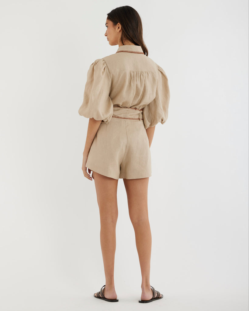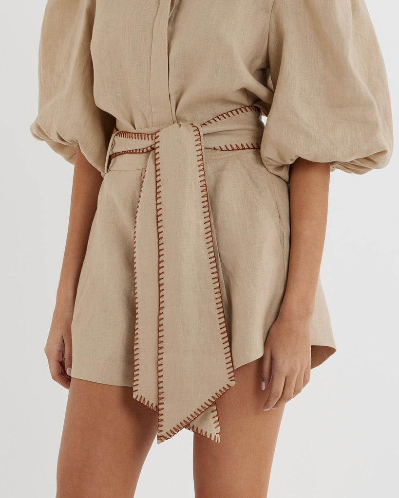Chloe Stitch Detail Linen Short - Sand