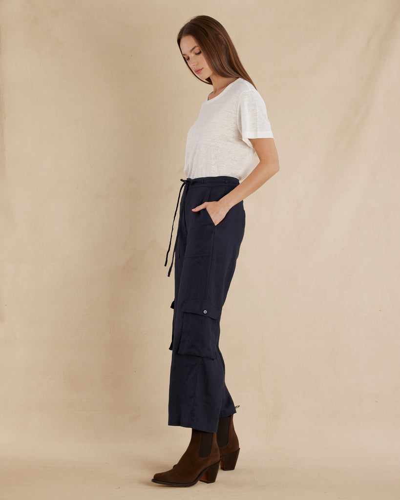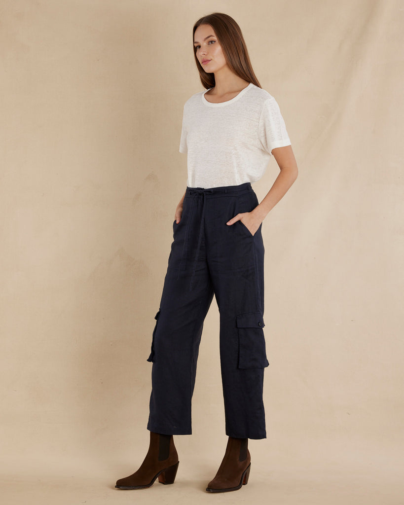 Ciel Linen Cargo Pant - Navy