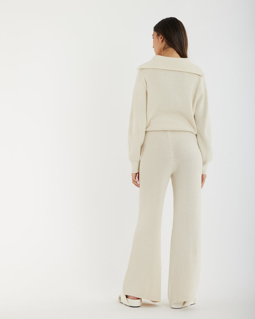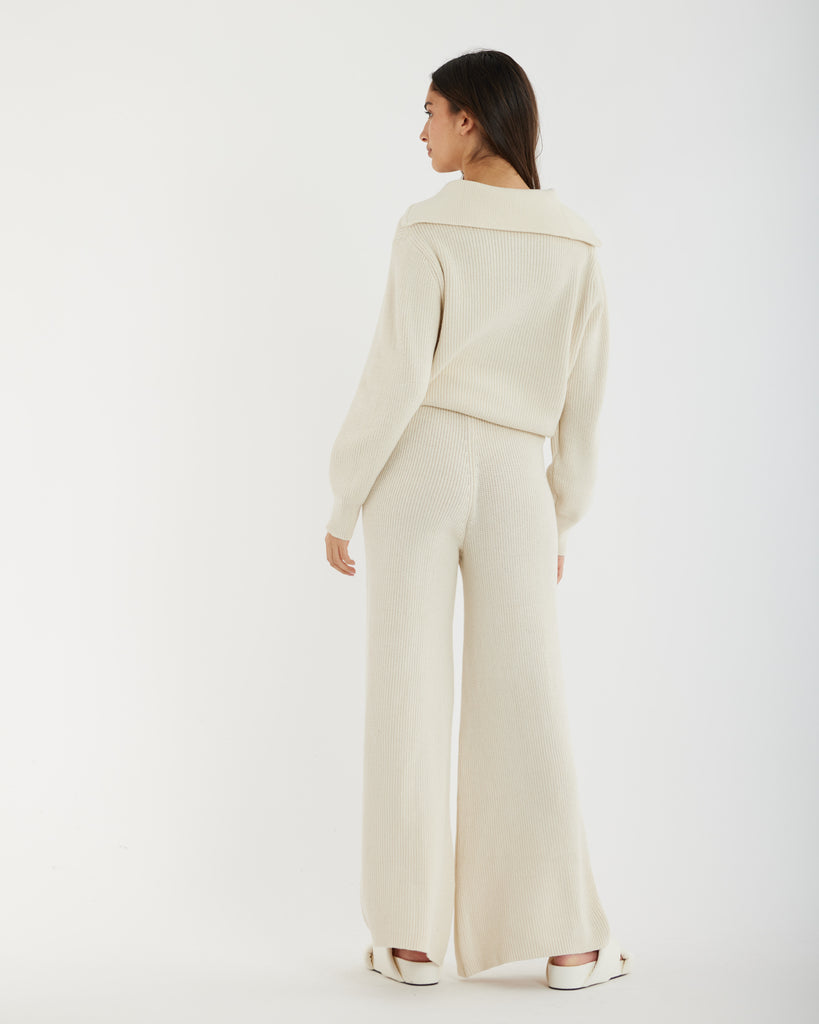 Get ready to elevate your loungewear game with our Eline Knit Quarter Zip Polo. Made from the finest quality cotton and cashmere blend, pair with the Eline Knit Pant for the ultimate combination of comfort and style. The quarter-zip polo sweater features a sleek and modern design, with a ribbed hem and cuffs, while the matching knit pants boast an elastic waistband for maximum comfort. Whether you're working from home or simply relaxing, this set is the perfect way to stay comfortable while looking effortlessly cool and stylish.