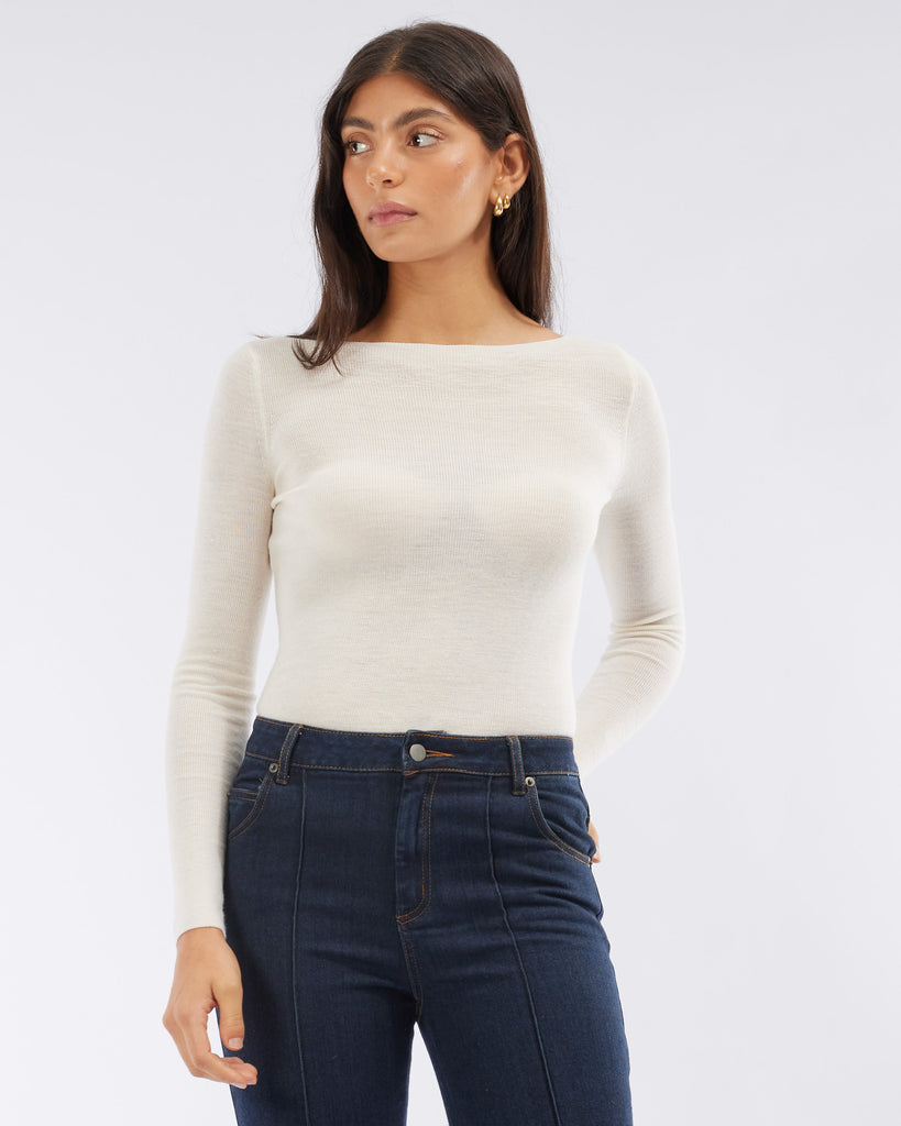 Ellie Merino Knit Boat Neck - Cream