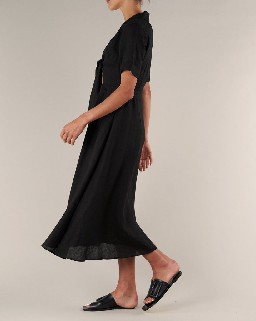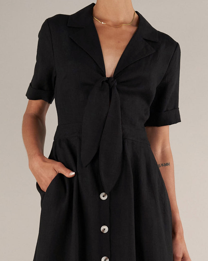 A romantic take on a classic fit and flare shirt dress, the Ines Linen Tie-Front Dress was designed as an all-seasons wardrobe favourite for the modern woman. It features a neat collared neckline that falls into a waisted skirt and is finished with a tie-front cut-out detail.