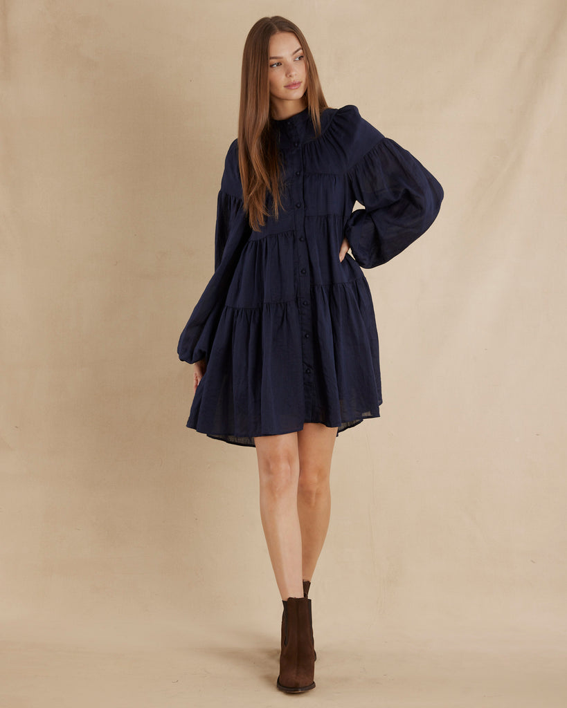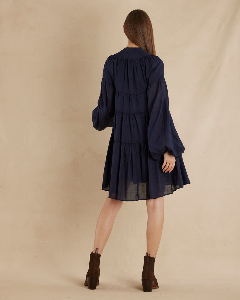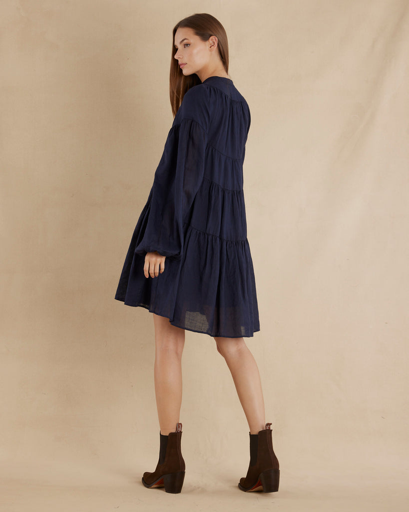 Isabelle Ramie Tiered Mini Dress - Navy