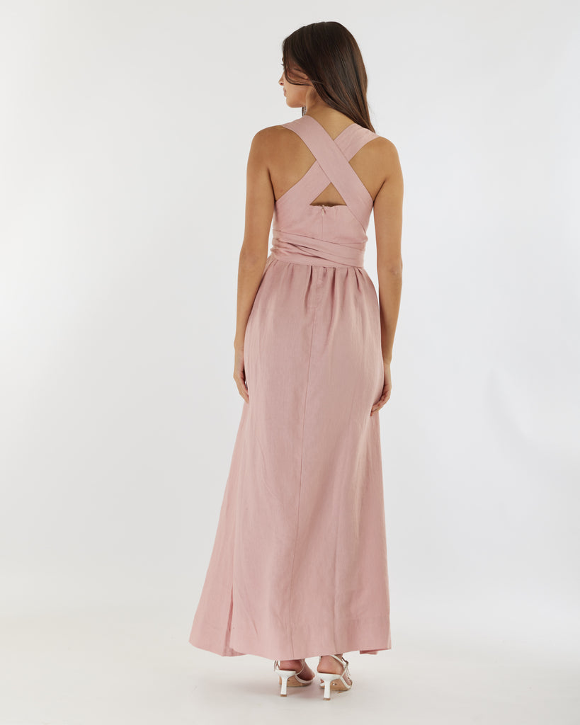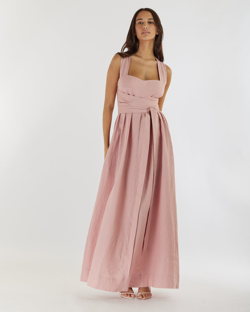 Cut in a pure linen fabrication, the Juliette Linen Maxi Dress will take you from sunset drinks straight to dinner. Featuring a light bustier style bodice, wrap construction neckline and flowing full skirt length, it's a romantic vision for summer dressing. Dual side pockets and back zip construction have been added for ease of wear. Wear yours with sandals or heels.