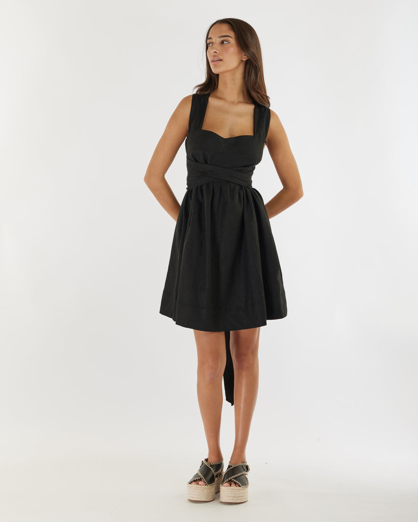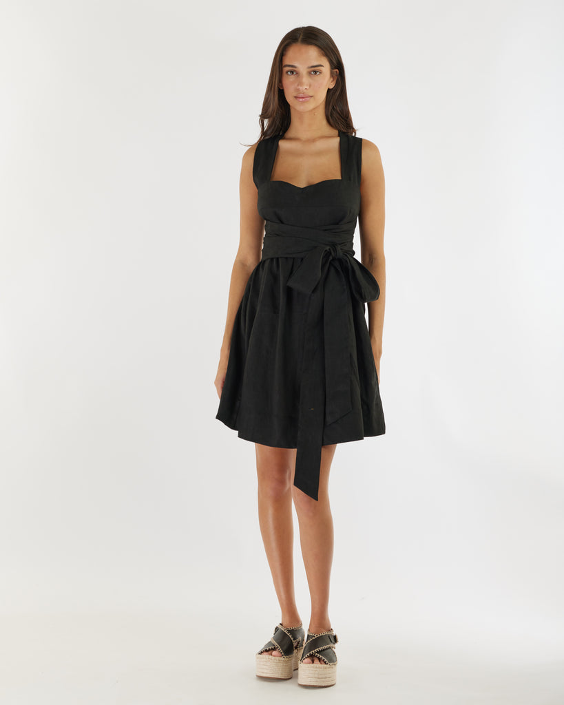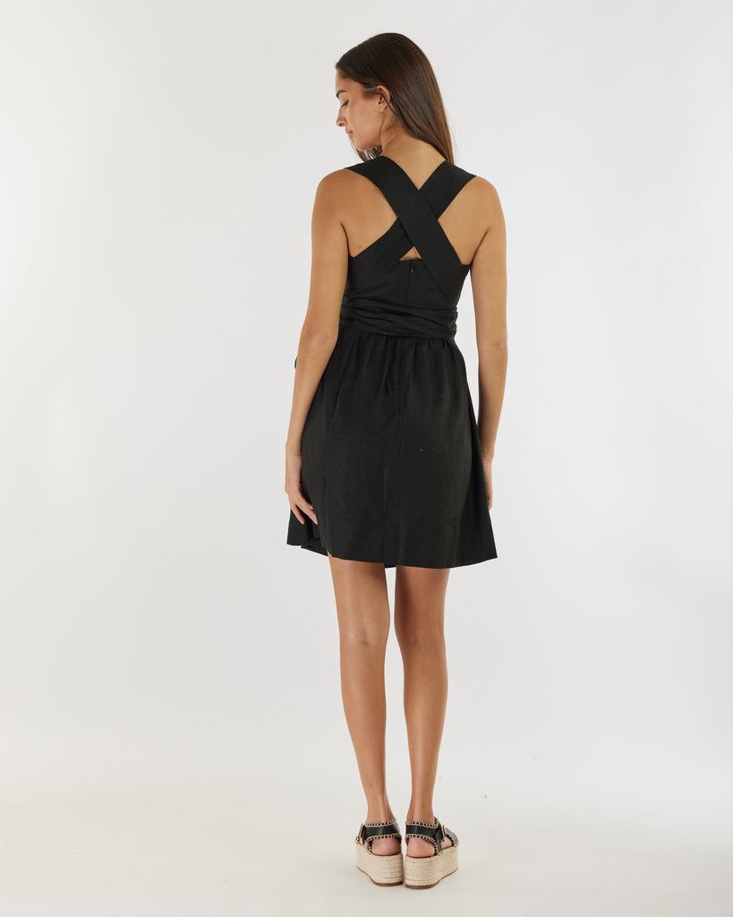 Juliette Linen Mini Dress - Black
