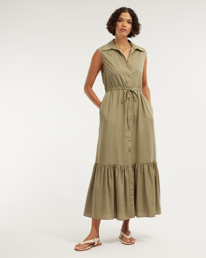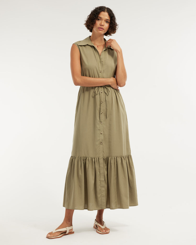 Kate Buttoned Maxi Dress - Olive