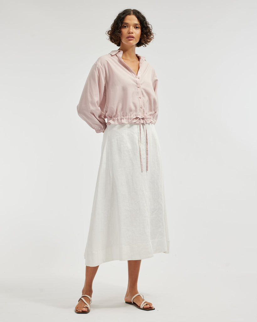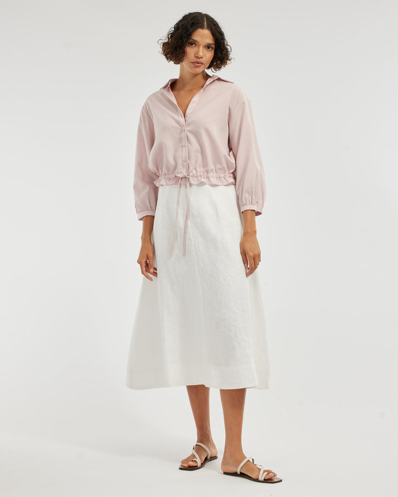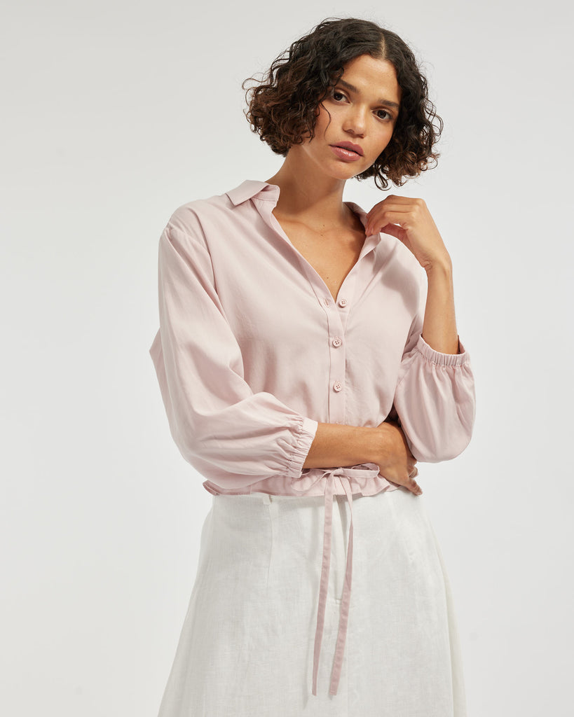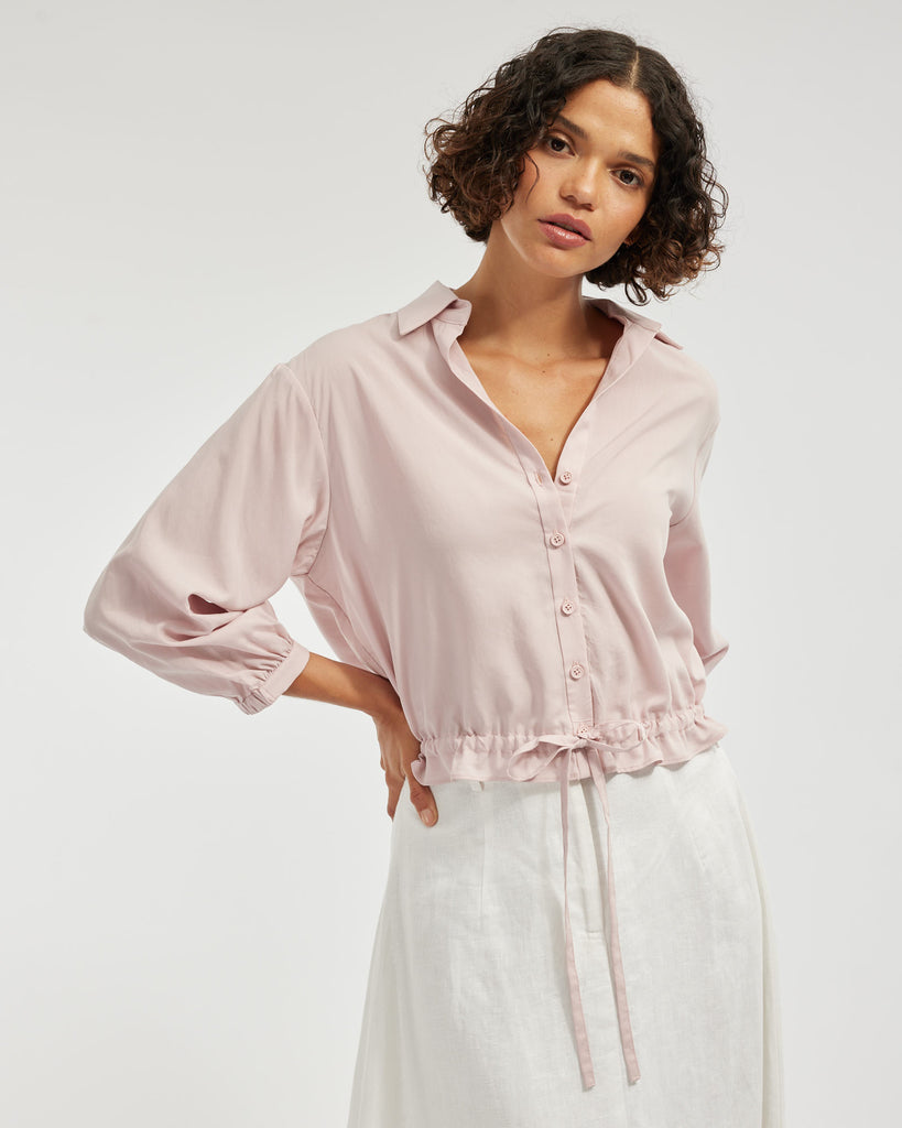 Introducing the Kate Long Sleeve Top – a refined piece that blends classic design with modern accents. Its cropped silhouette and adjustable drawstring hem add a touch of contemporary styling, while the collared neckline and long sleeves ensure a polished finish. Ideal for pairing with high-waisted separates for a balanced look.