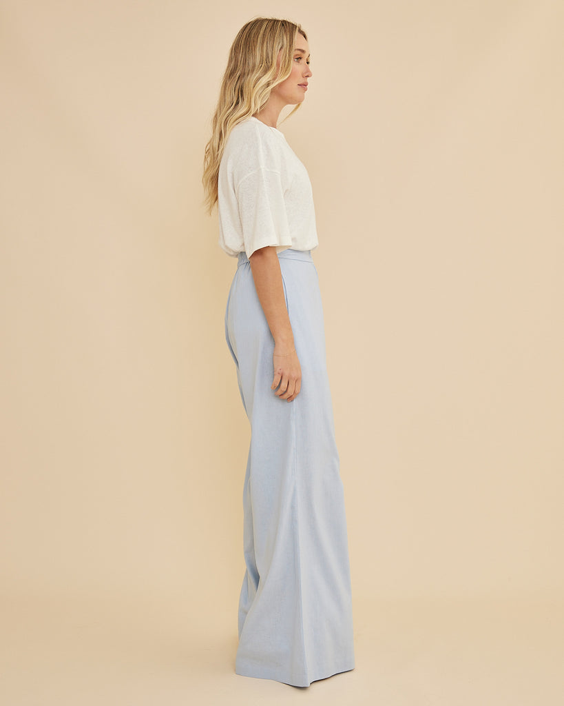 Our Lucie Wide Leg Pant is a sophisticated staple crafted from stretch linen viscose for optimal comfort and movement. This versatile design features practical dual side pockets and a secure zip front entry with hook and clasp closure. The thoughtful elasticated back ensures a comfortable fit, while the flared leg creates an elegant, flowing silhouette. Suitable for everyday wear.
