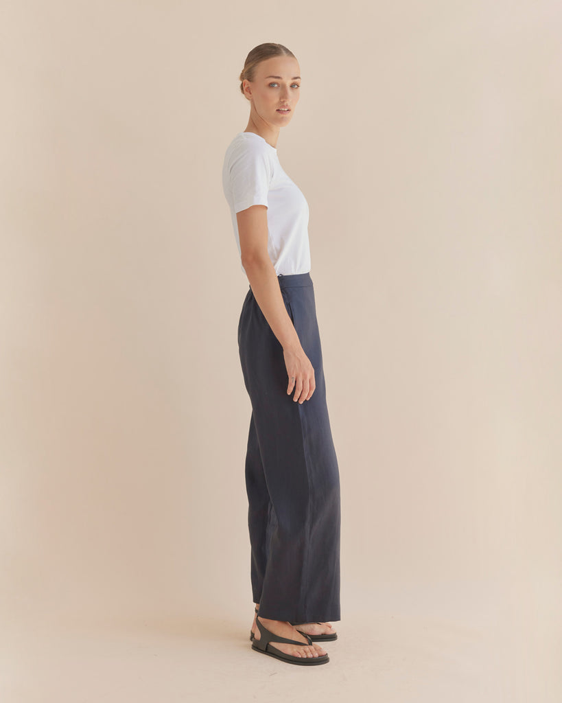 The Mabel Linen Pant reinvents the classic linen pant with its contemporary and simplistic approach. Spun from 100% linen, these pants sit high on the waist to flatter all body types, includes dual side pockets for practicality, an elasticated waist band for comfort and stretch and finishes off with a wide leg silhouette. Relaxed and effortless, they make for the ultimate wardrobe essential.