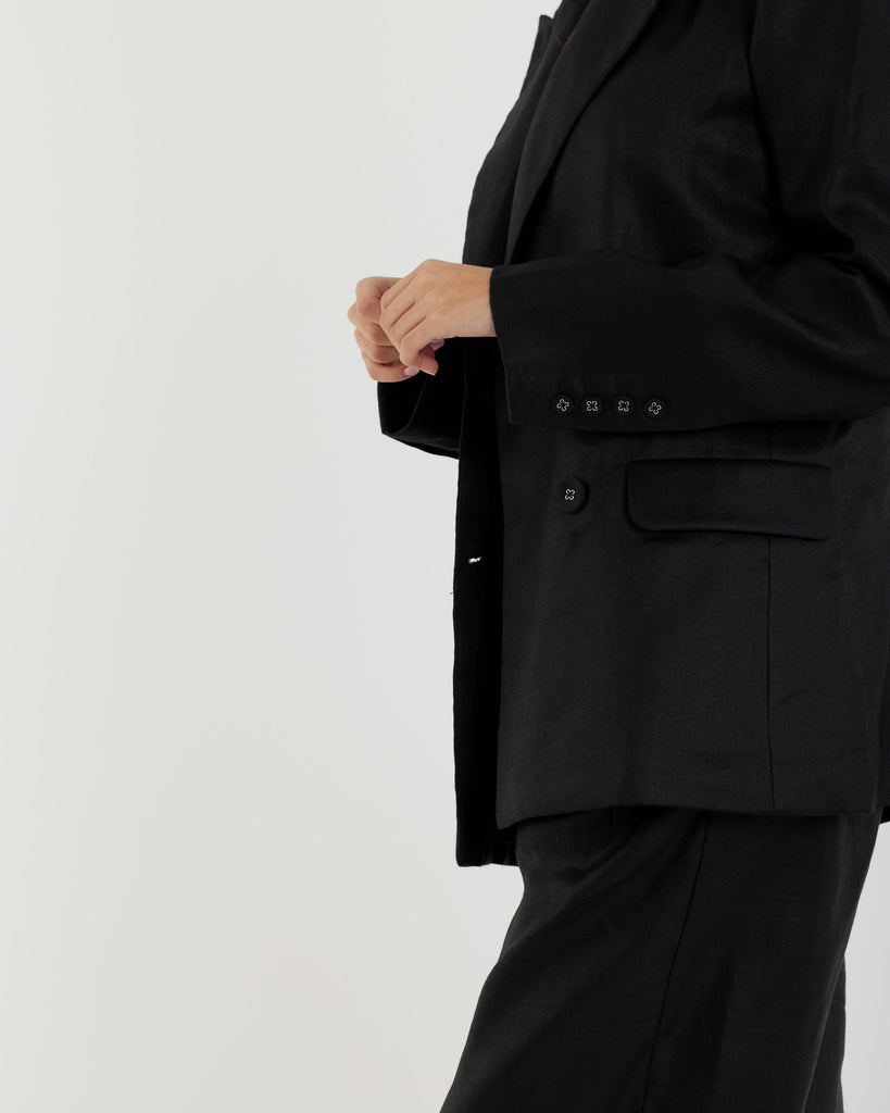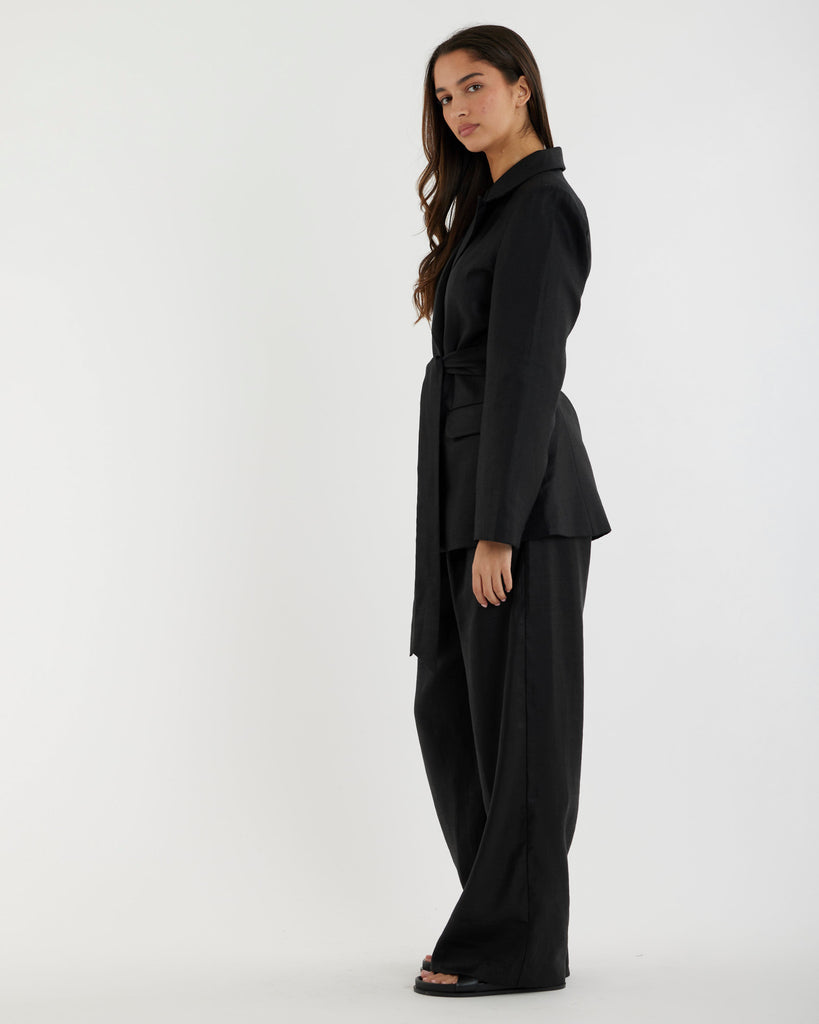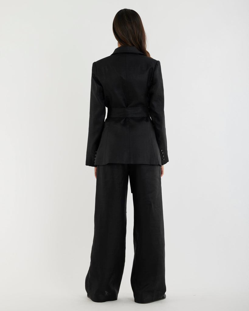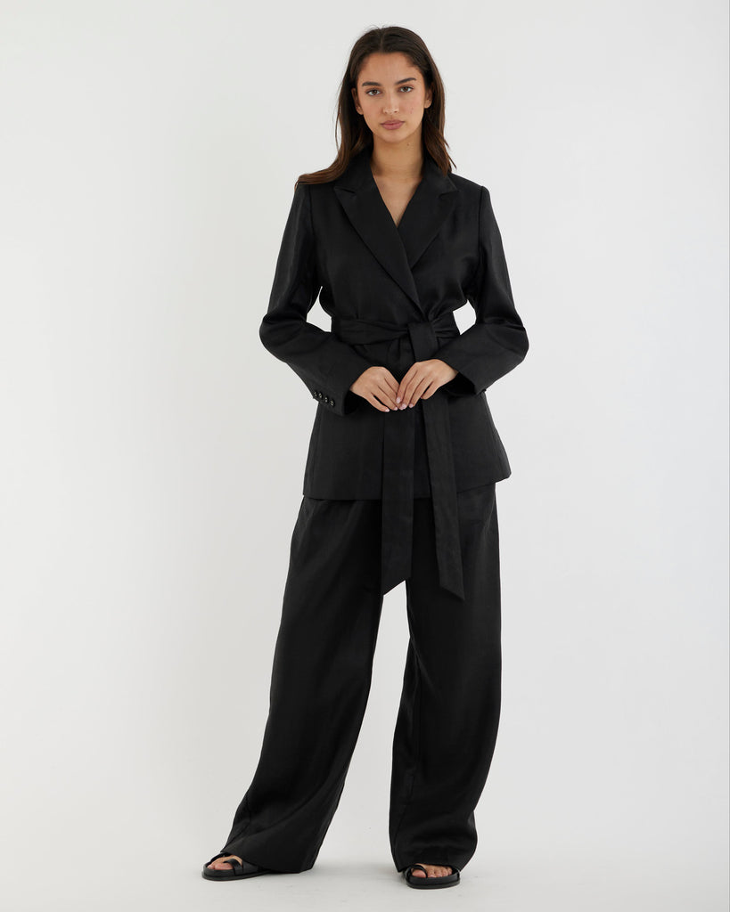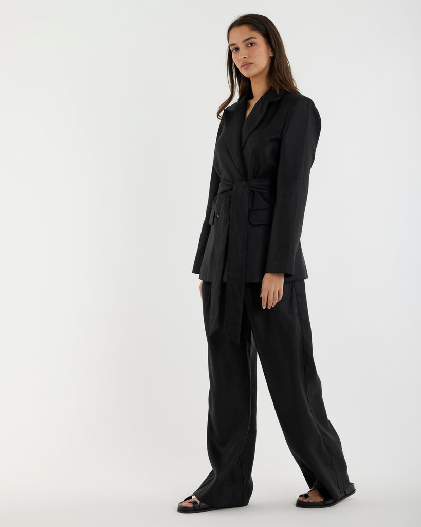 Mia Double Breasted Tie Blazer - Black