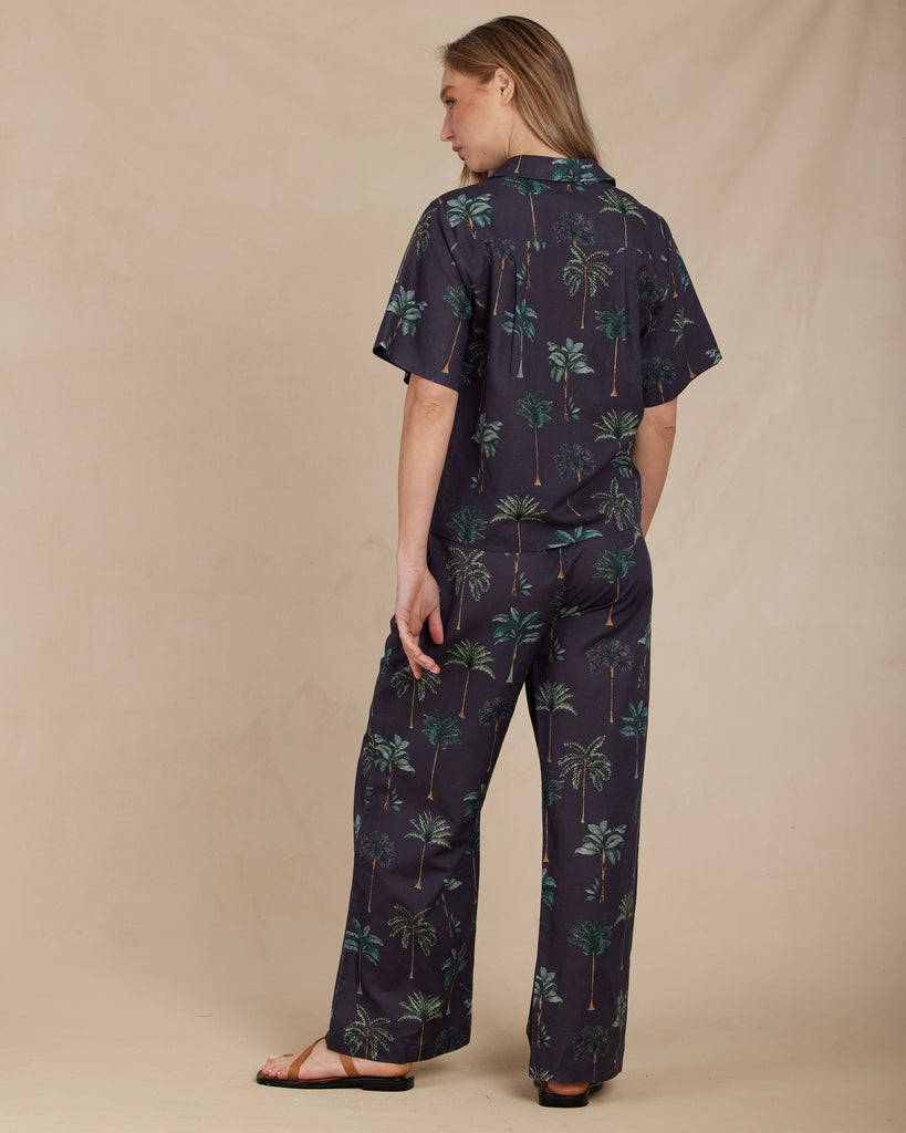 With resort dressing in mind, the Palmira Linen Bowling Shirt is destined for your travel wardrobe. Cut in a travel-friendly linen viscose fabrication and an exclusive directional palm print, it features a boxy cut and a wide-set collar. Pop it over your swimwear and the Palmira Pant for an effortless day-to-night beachside look.