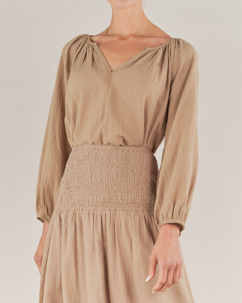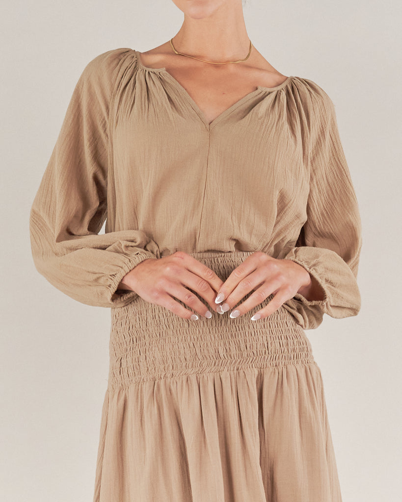 Panama Linen Cotton Gauze Blouse - Taupe