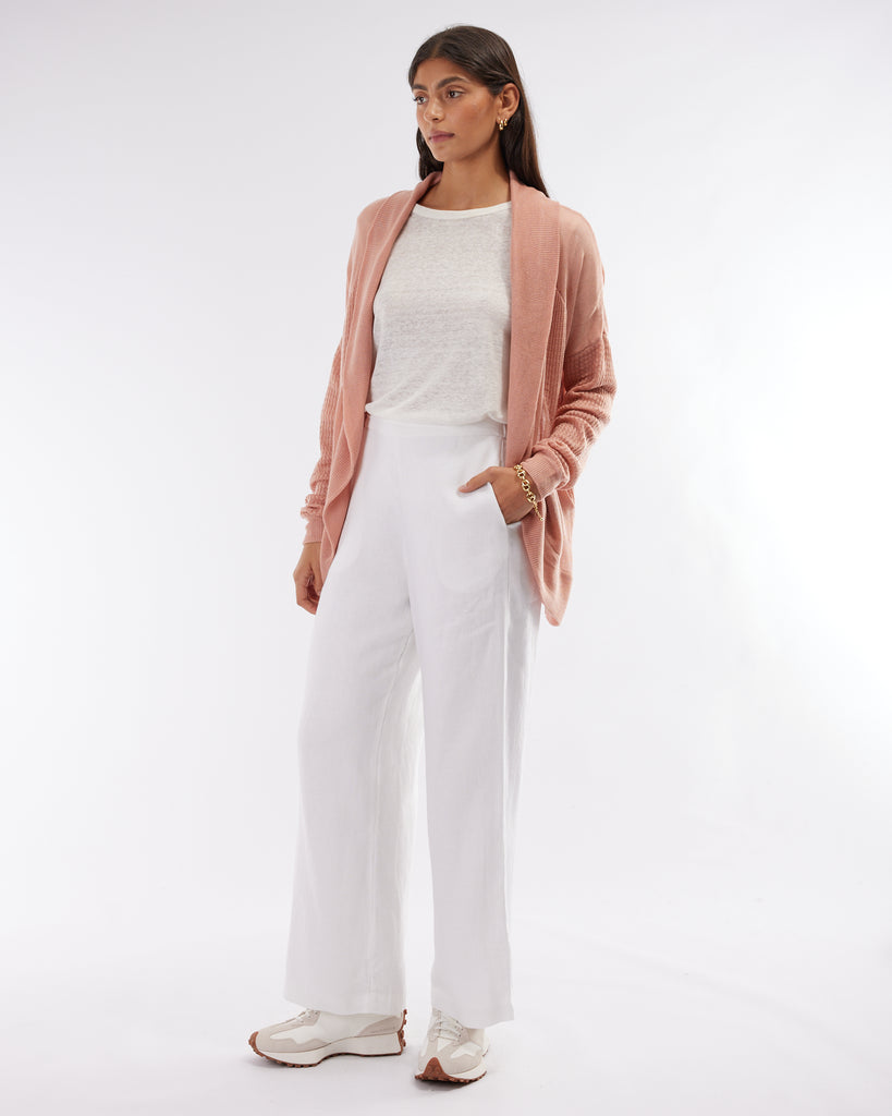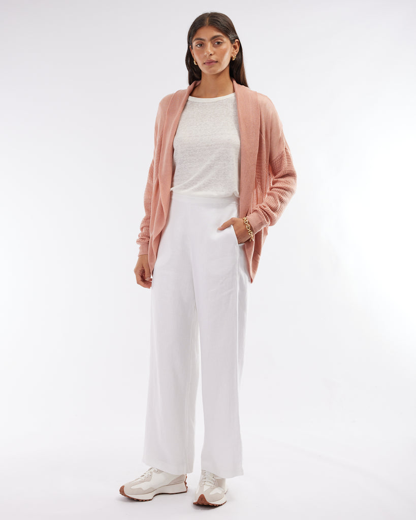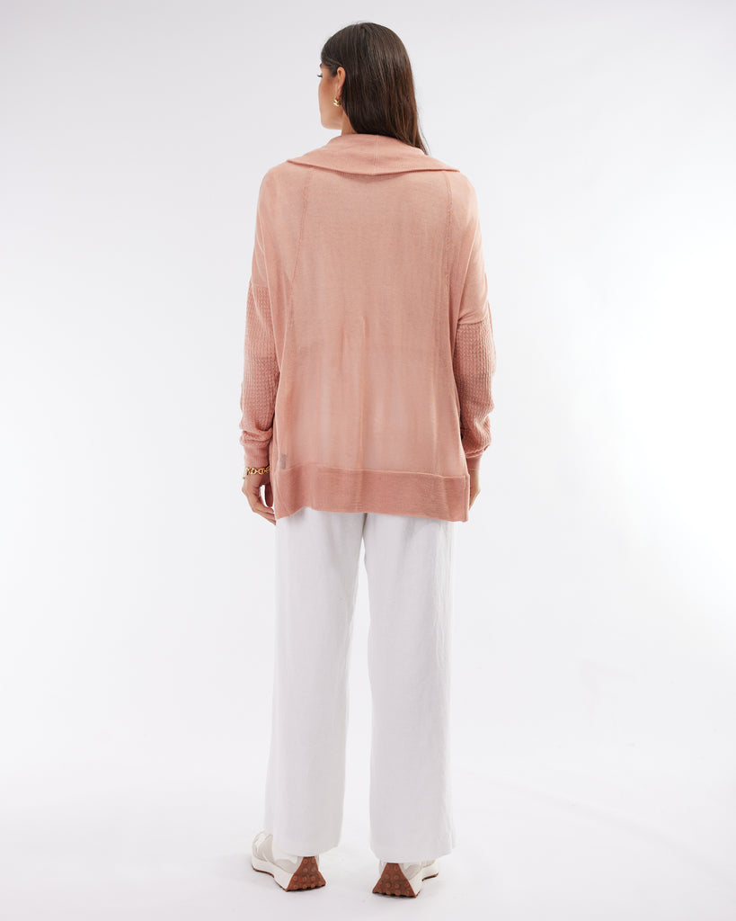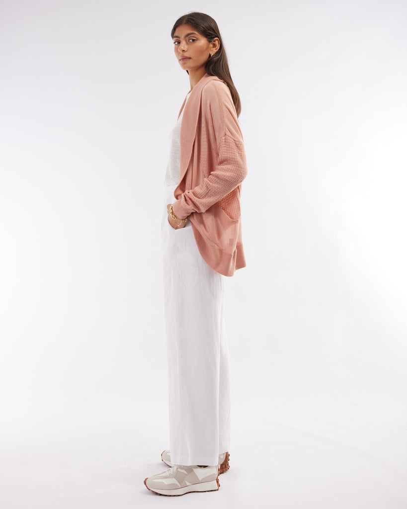 A relaxed layering piece with tactile depth, the Perry Knit Cardigan offers a breathable feel and open drape. The textured sleeves add dimension, while the shawl collar and batwing silhouette create an easy shape that moves with you. Perfect for transitional days and casual refinement.