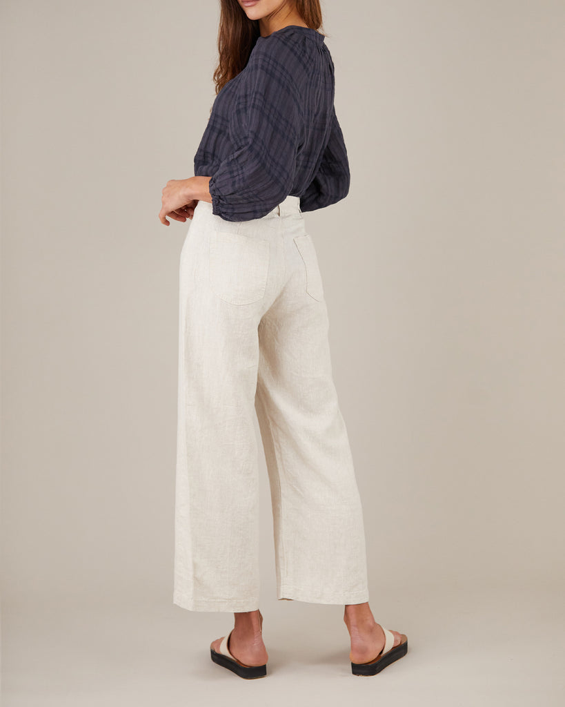 Cut from our favourite core Telopea Blouse block, the Pila Linen Blouse is our refreshed offering of a wardrobe staple in a luxurious, lightweight textured check-weave linen. Wear open as a v-neck, or closed with the hook and clasp closure at the base of the stand collar.