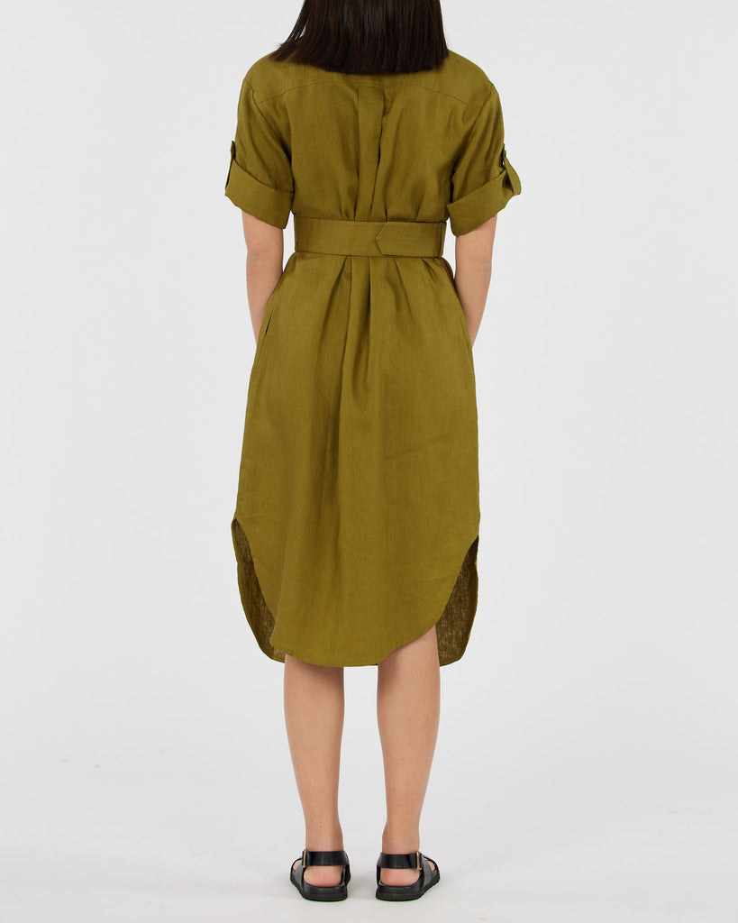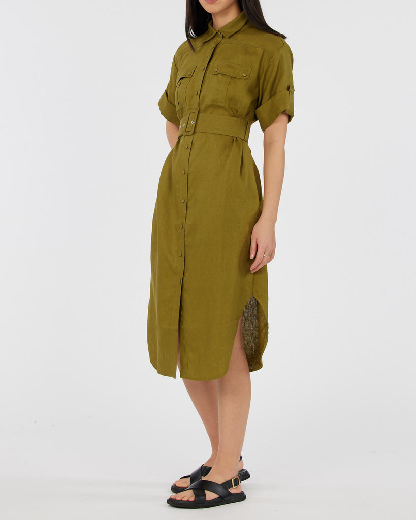 Provence Linen Shirt Dress - Olive