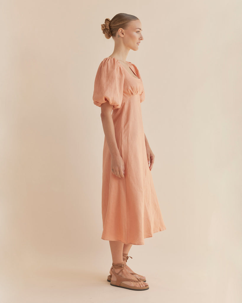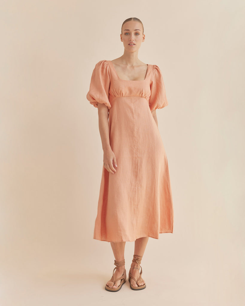 Romilly Linen Midi Dress - Apricot