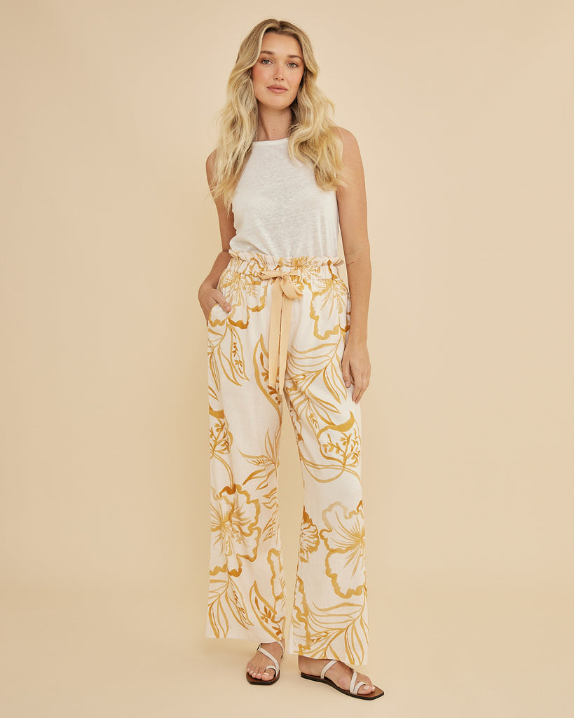 Inspiring a resort mood, our Rosemallow Elasticated Pant – a flowing piece adorned with delicate watercolor hibiscus blooms. This relaxed design features a comfortable elasticated waist with graceful grosgrain ties, while the wide-leg silhouette creates elegant movement. The addition of dual side pockets brings everyday functionality. Pair back with sandals and one of our favourite linen jersey tees.