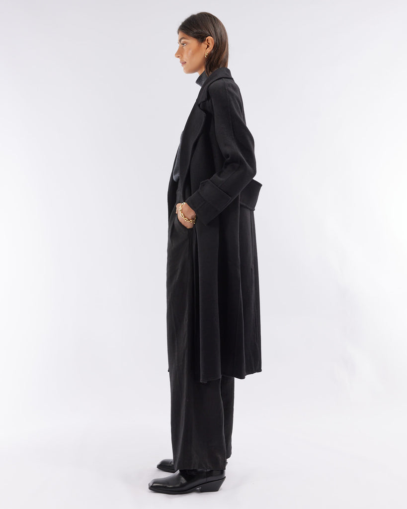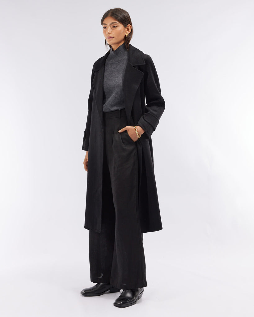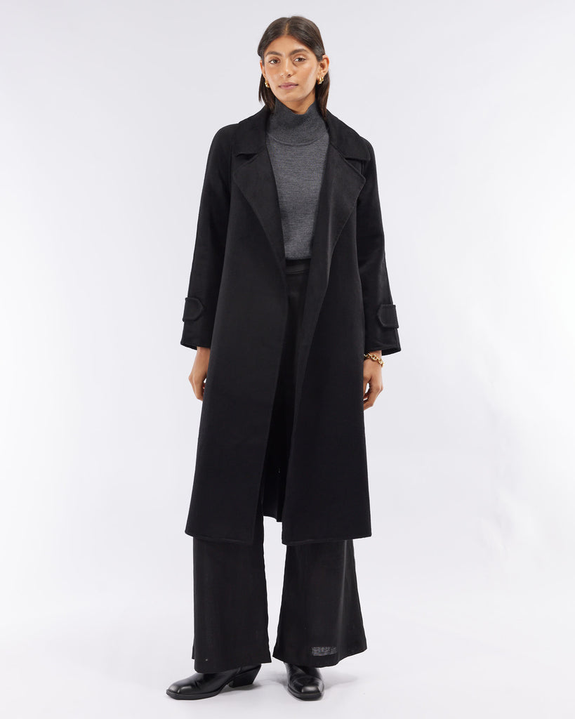 Saddler Double Faced Wool Coat - Black