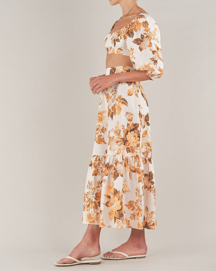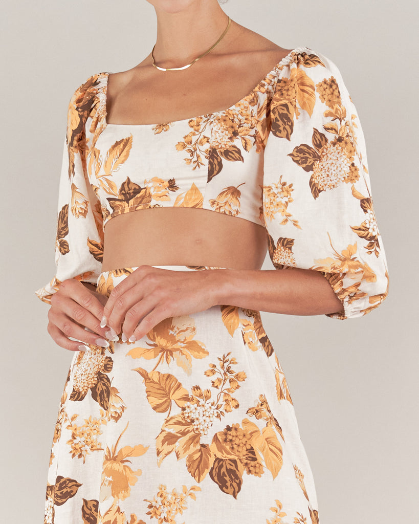 Named after the island in the Caribbean, the Saint Lucia Linen Crop Top is your newest resort holiday companion. Featuring a scooped neckline to flatter the decolletage, elasticated puff sleeves and shirring at the back for a tailored, slip-on fit. Perfectly paired back with the matching skirt or shorts.