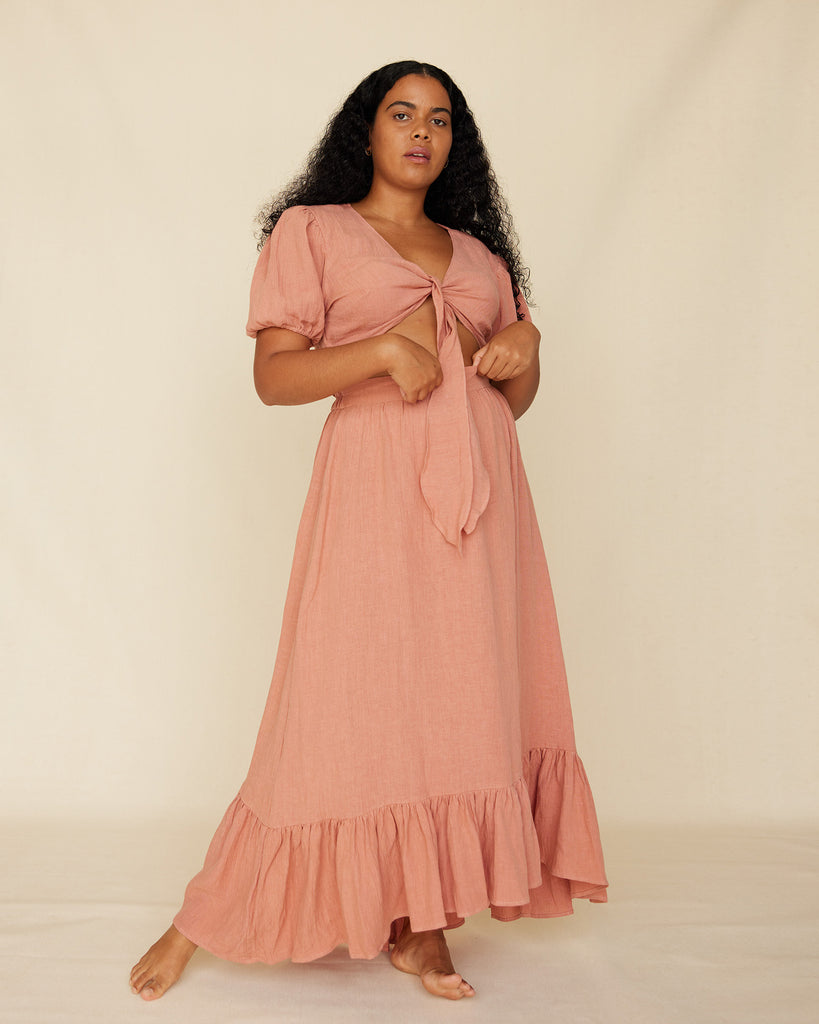 Saloma Linen Skirt - Rosewood