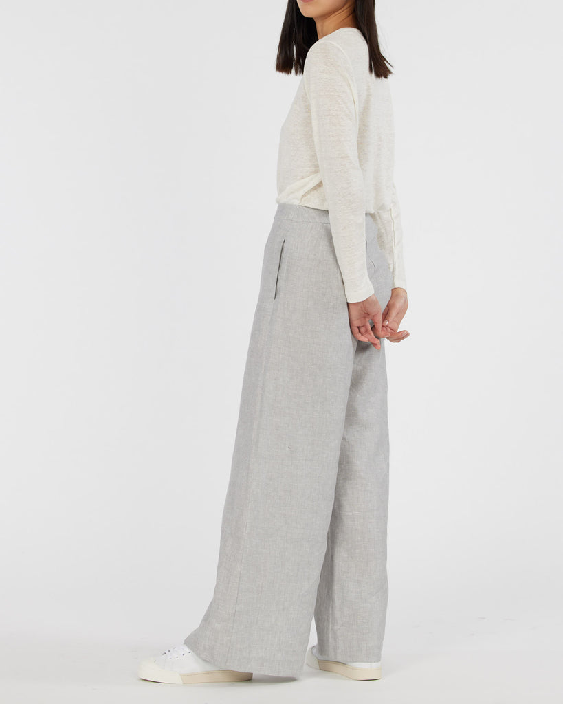 Discover the Vento Linen Pant, a modern take on the classic linen pant. They feature dual side and back pockets for practicality, and complete with a wide leg cut and relaxed fit. Your new wardrobe essential, these pants offer a lightweight and airy feel, making them the perfect choice for a refined and comfortable look.