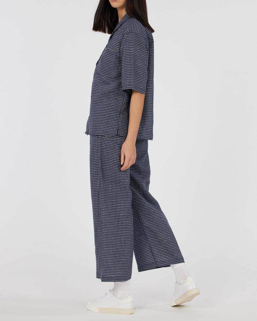 Elevate your ensemble with the Virtuous Check Oversized Shirt, a pinnacle of refined elegance. Featuring a wide-set collar and short sleeves, this shirt exudes timeless sophistication. The boxy cut and oversized fit create a modern yet relaxed silhouette. With delicate side slits and a single breast pocket, this shirt offers subtle detailing. Complete with a button closure, it is the epitome of effortless chic and versatile style. Pair it with the matching Virtuous Check Cropped Pant or Virtuous Check Cropped Skirt for a perfectly coordinated ensemble.