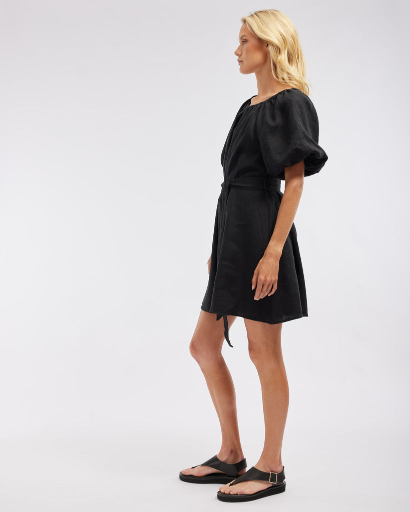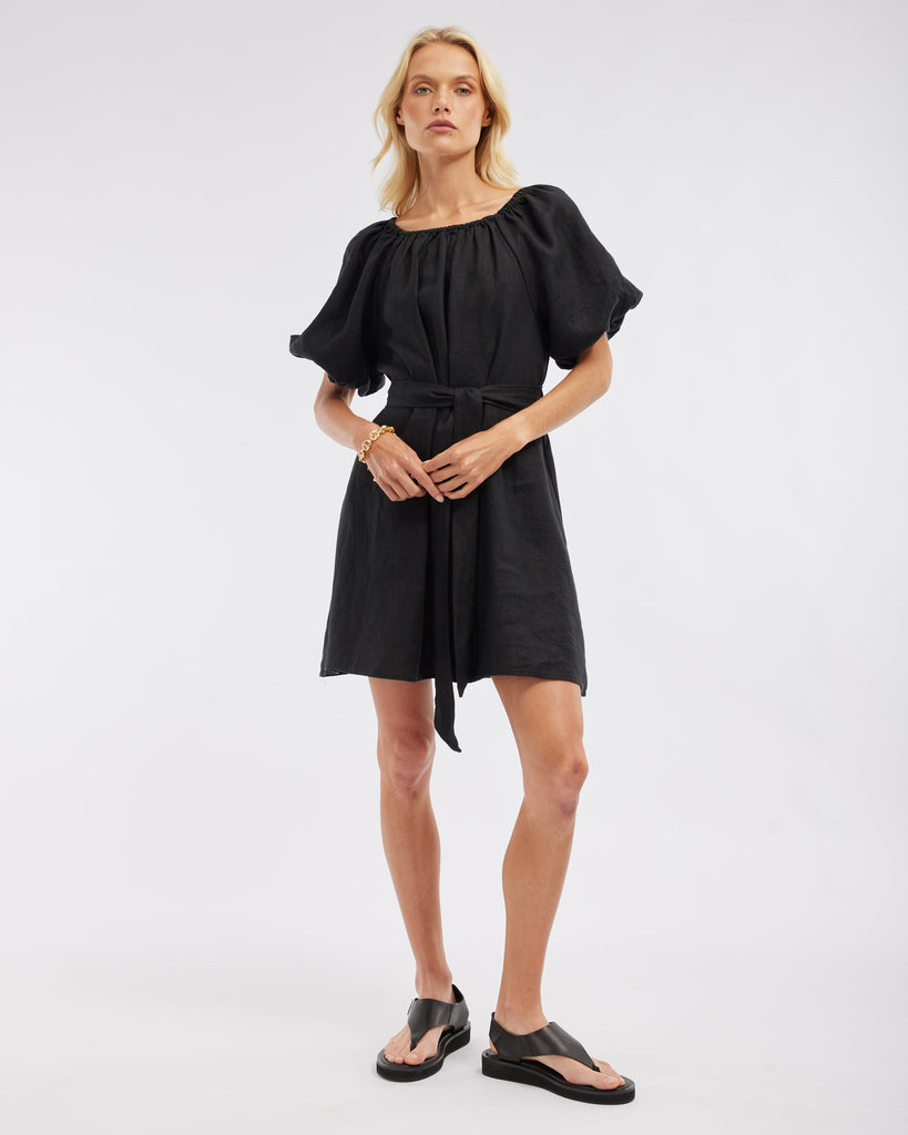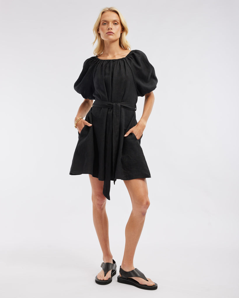 Playing sister to our beloved Wren Linen Maxi Dress, the Wren Linen Mini Dress is an embodiment of effortless style. Crafted from our high-quality linen, it is perfect for warmer days as it is breathable and durable. The dress boasts an elasticated neckline, romantic puffed short sleeves, dual side pockets, while the removable ties cinches in the waist for a flattering silhouette. The dress can be worn on or off the shoulder, with or without the belt, making it a versatile addition to any wardrobe.